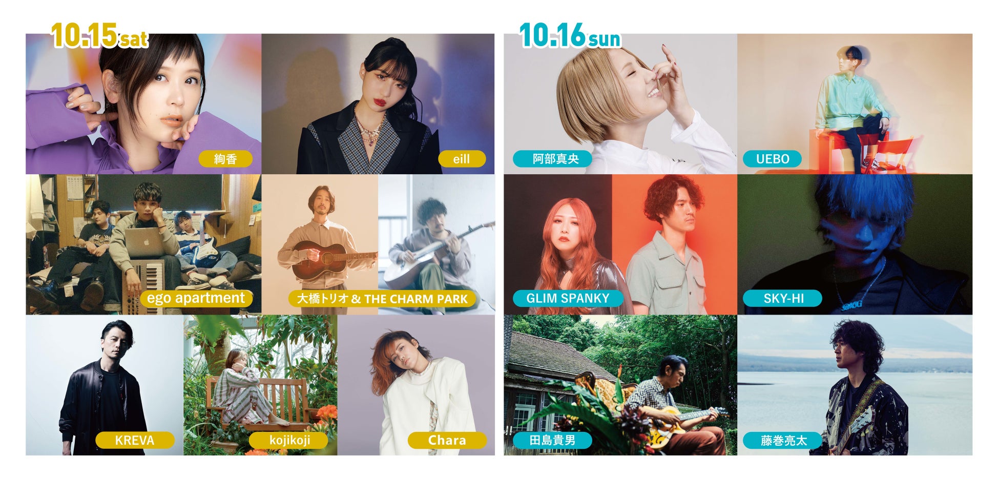 絢香、eill、ego apartment、大橋トリオ&THE CHARM PARK、KREVA、kojikoji、Chara and more