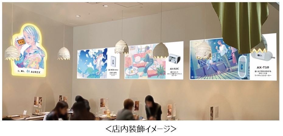 期間中、店内では、イラストレーター・pomodorosa(ポモドローサ)氏がプロモーションの為に描き下ろし、様々な音楽の楽しみ方を表現した、オリジナルキャラクターの世界観で彩ります。展示してある新商品3モデルを使っての試聴や聞き比べをシンガーソングライター・にしな氏の楽曲「東京マーブル」を収録したオリジナルカセットテープで自由に試すことができます。