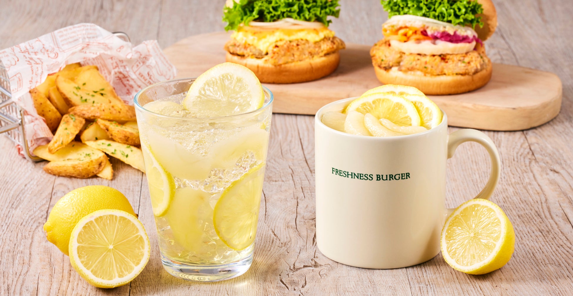 店内でじっくりとはちみつに漬け込んだレモンと、シーズナルフルーツを使用したフレッシュネスオリジナルのクラフトレモネードに、その芳香さやとろけるような食感から「果物の女王」と呼ばれるラ・フランスが初登場。店内でじっくりとはちみつに漬け込んだレモンスライスと、ラ・フランスが贅沢に入り、ラ・フランスと洋ナシシロップをバランスよく配合したオリジナルシロップの程良い甘みとレモンの酸味が調和した一杯です。