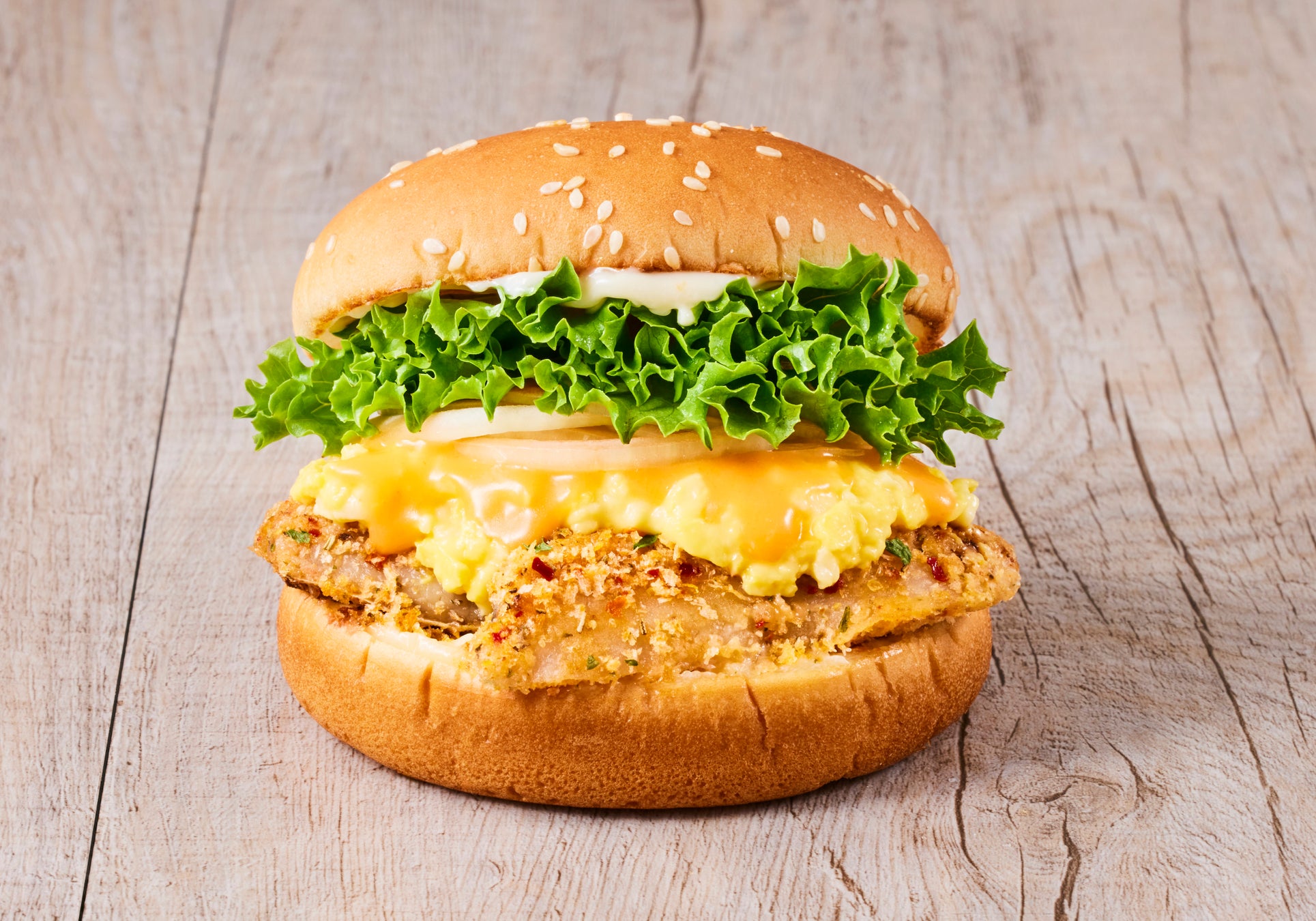 銀だらグリエのフレンチバーガー スクランブルエッグとオマール海老ビスクソース 840円