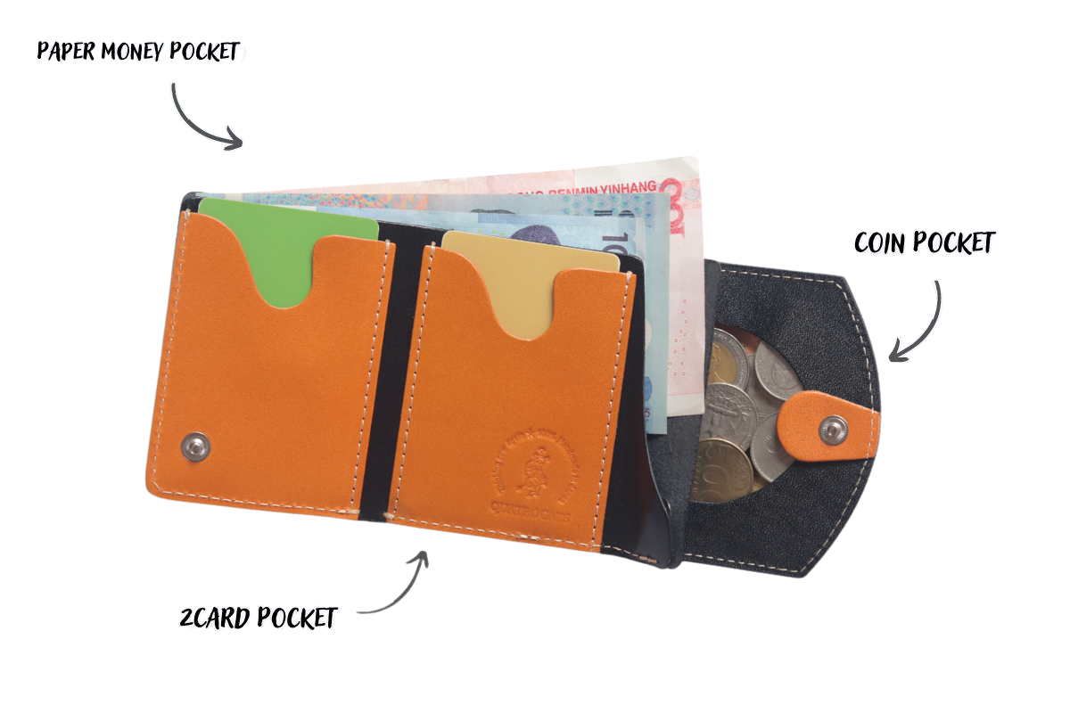 手のひらサイズながらお札は約10~20枚・コインは約20~30枚・カードポケット2箇所:約6~9枚。必要なものは全て入ります。