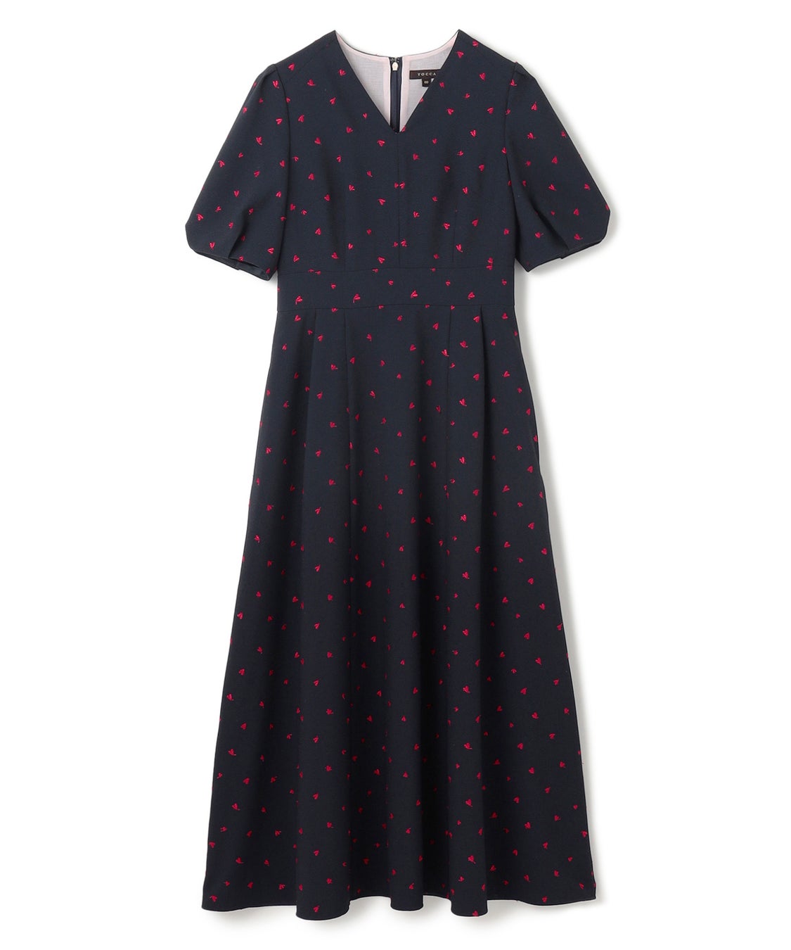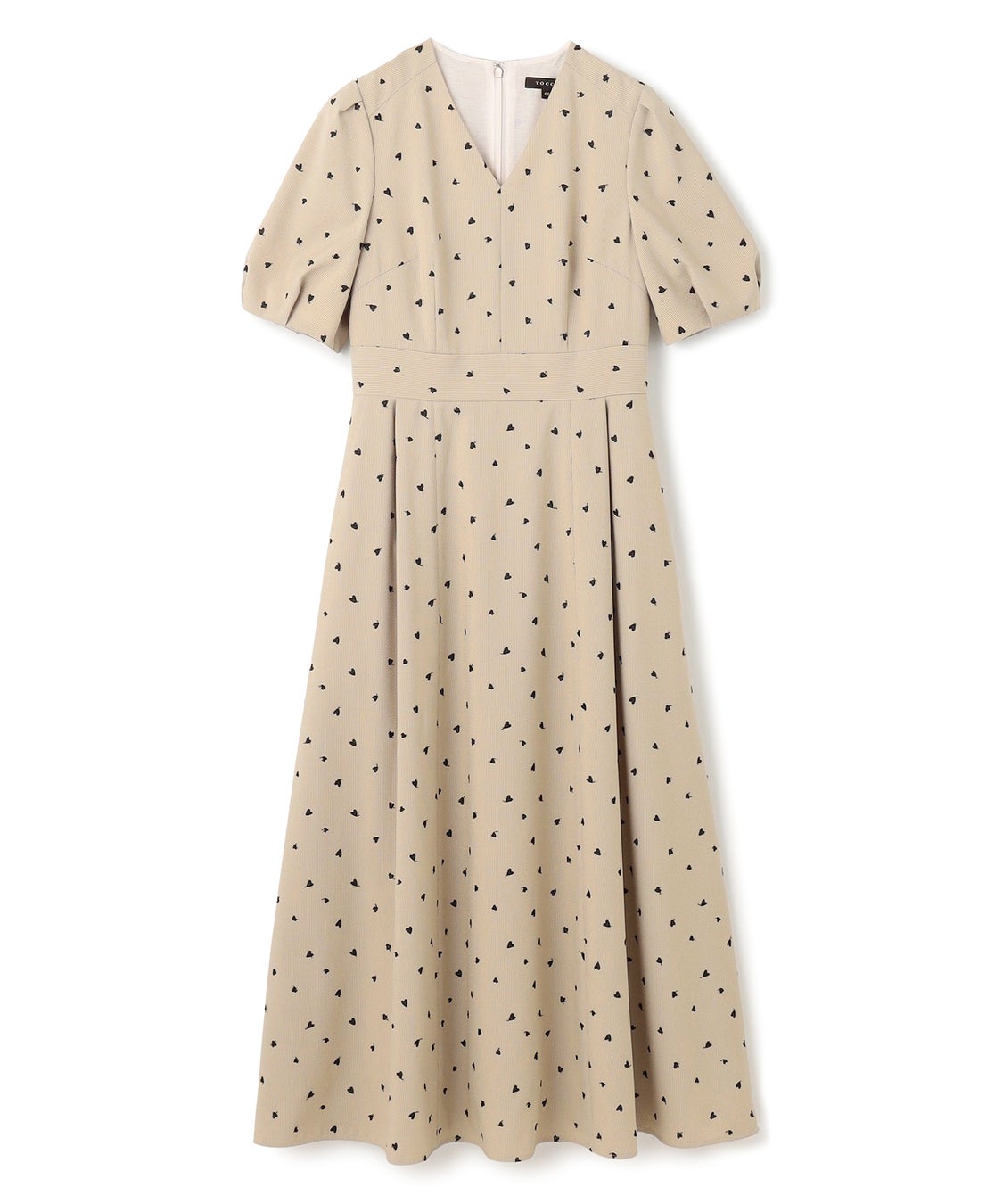 商品説明:小さなハートの刺繍が華やかな印象のワンピース。軽やかなサッカー素材は、ストレッチ性とイージーケアがデイリー使いにぴったり。長めのパフスリーブは、広がり過ぎず程よい甘さをプラスします。