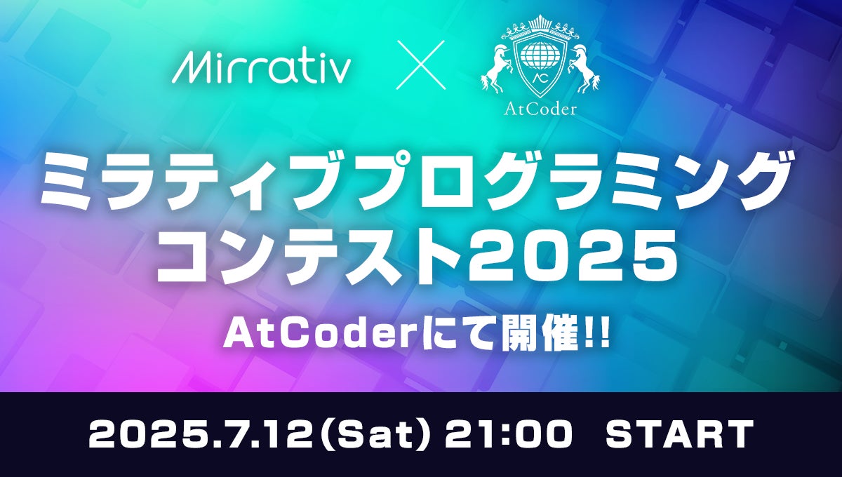 「All for Streamers」のコンセプトで、YouTube・Twitch・Mirrativなどの各配信プラットフォームで活動する配信者(VTuber/ストリーマー等)を支援する株式会社ミラティブ(本社:東京都目黒区 代表取締役:赤川隼一)は、日本最大の競技プログラミングサイトAtCoderにて「ミラティブ プログラミングコンテスト2025」を、2025年7月12日(土)に開催いたします。