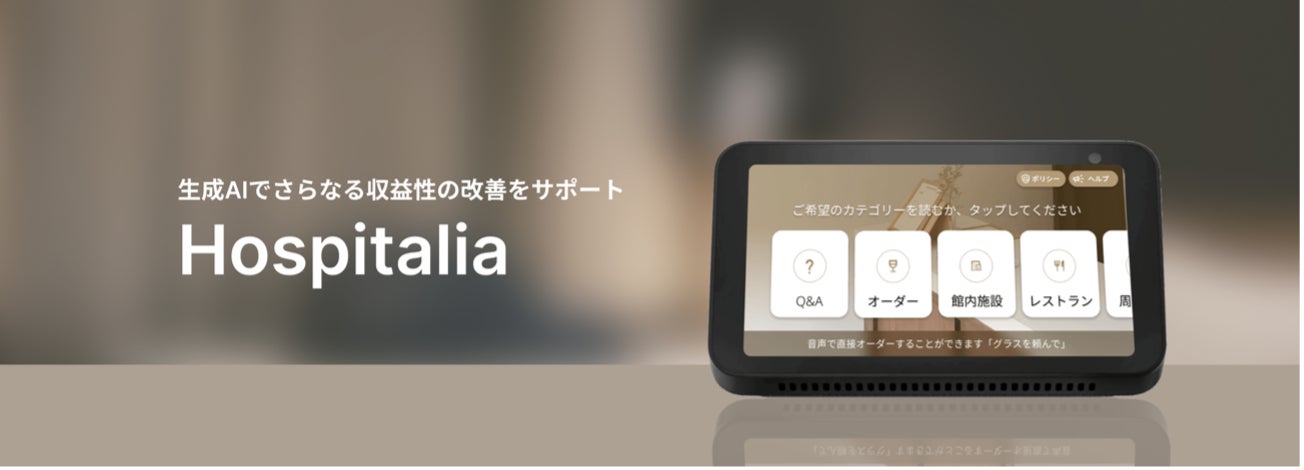 ※「Hospitalia」はAlexa Smart Properties for Hospitalityを基盤とした宿泊施設向けに特化したAlexaのサービスです。Alexa Smart Properties for Hospitality は一括でAlexaデバイスを管理ができる宿泊施設に特化したAlexaのサービスです。
