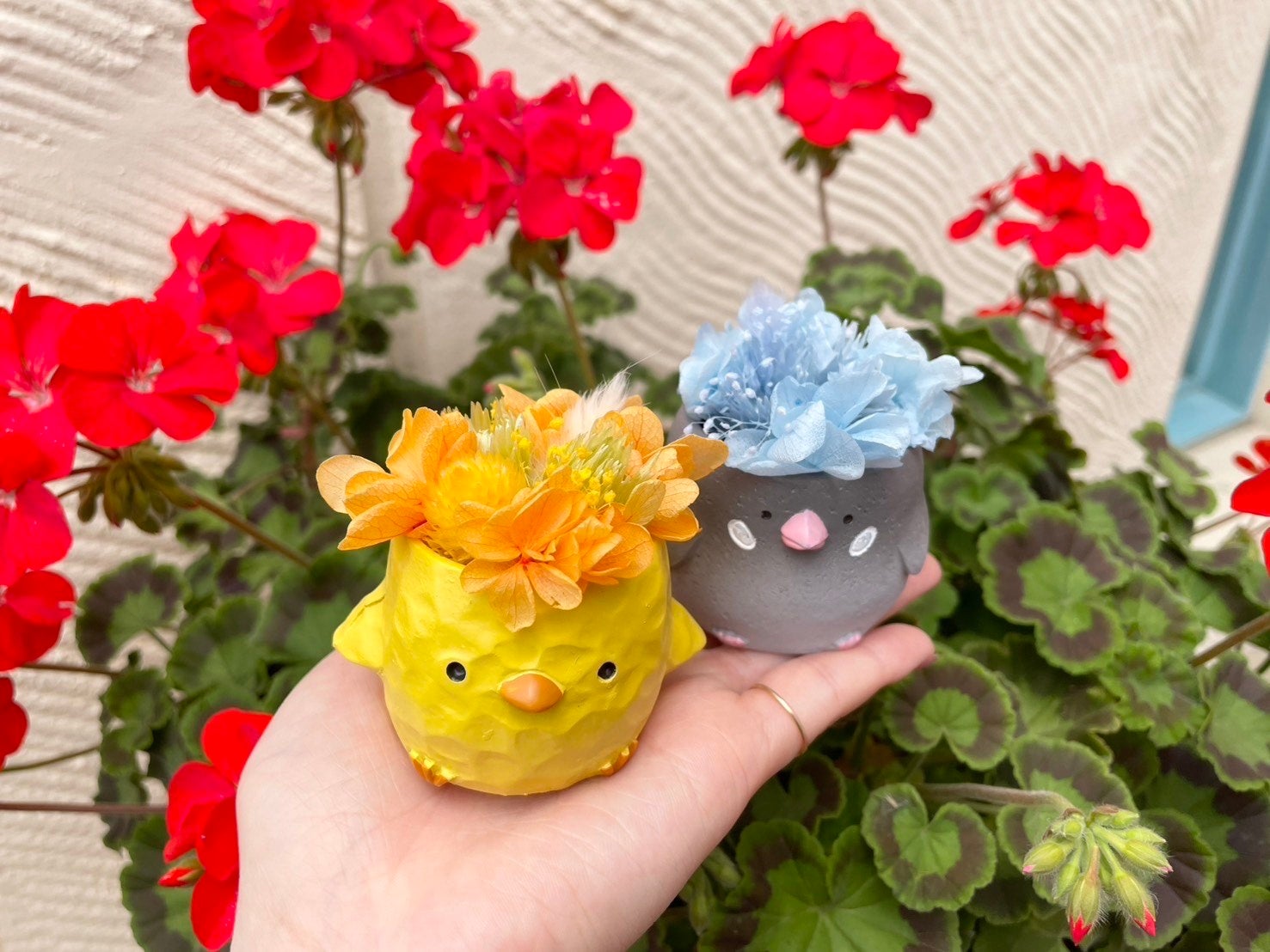 かわいらしいポットベースにお好きなお花を挿して完成させる、世界にひとつだけのアレンジが楽しめるワークショップです。