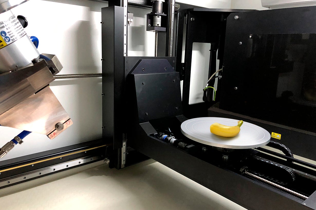 産業用CTスキャン「MCT225(株式会社ニコンインステック)」にて、本物のバナナを高解像度で3Dデータ化しています。