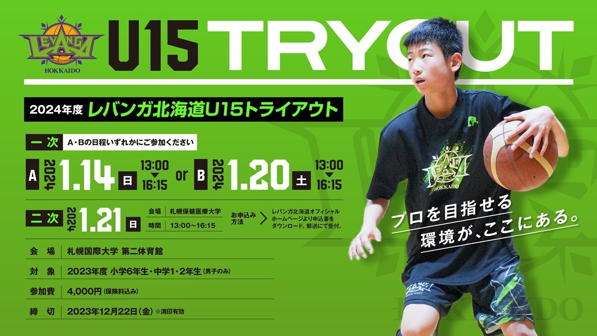 ▶https://www.levanga.com/team/levangahokkaido-u15/tryout2024/