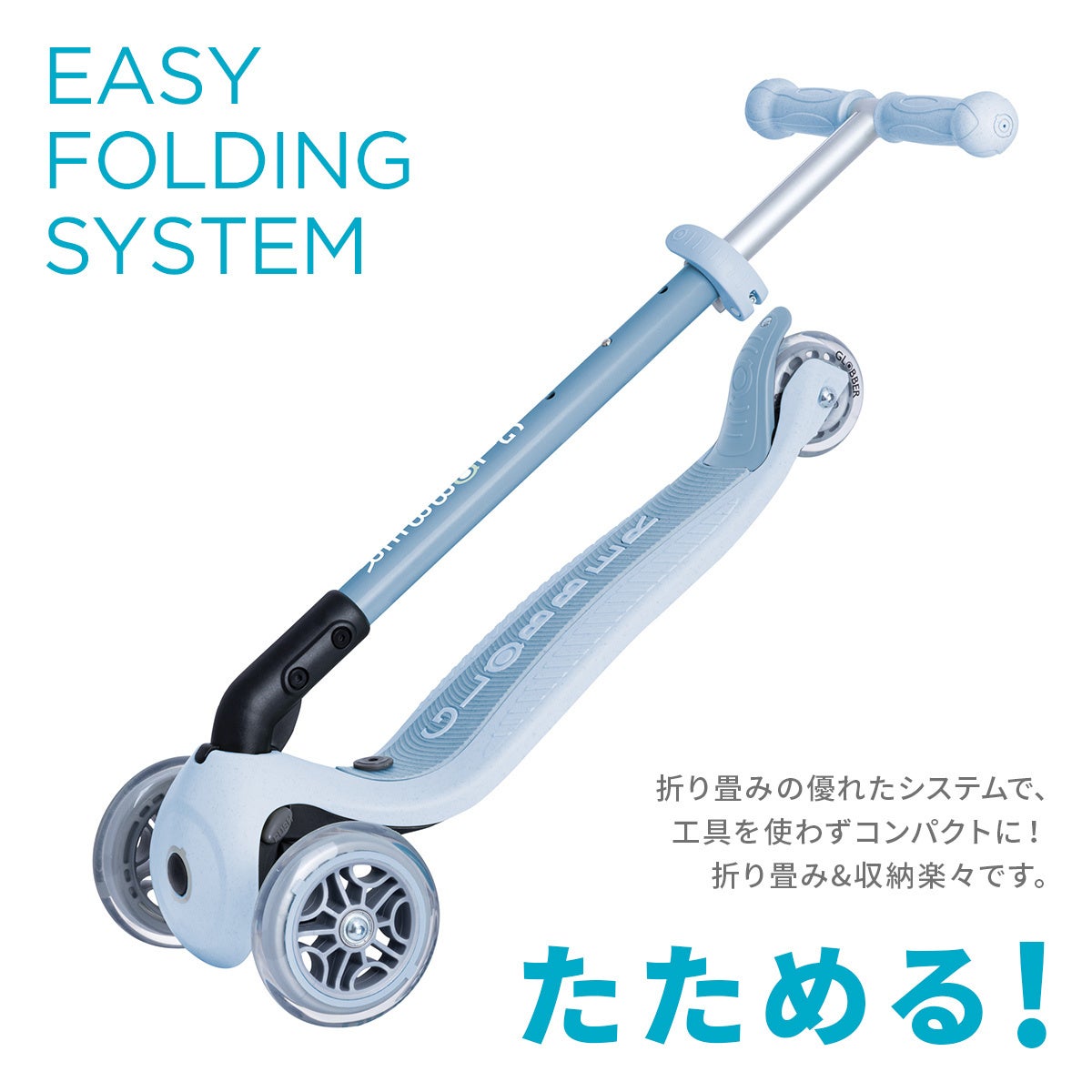 フランス生まれのGLOBBER。ミッションの1つに「イノベーション」を掲げ、ハンドルロックや折りたたみのシステム、工具不要のモードチェンジなど、ユニークなデザインを追求しています。環境にやさしい世界を目指し、再生プラスチックを使用したECOなモデルも展開。革新的なモビリティが、世界を冒険するお子さまとそのファミリーを応援します。