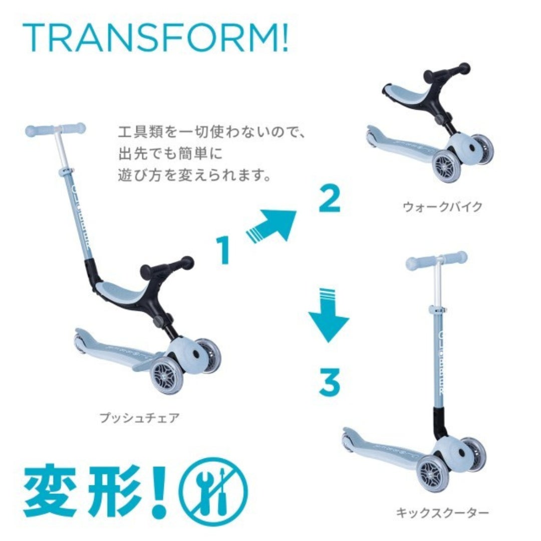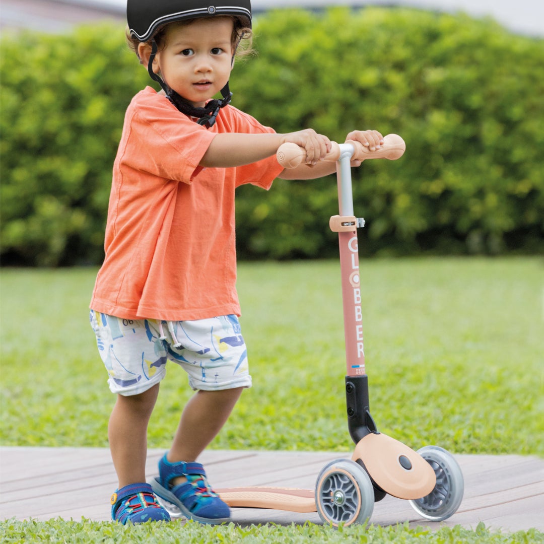 フランス生まれのモビリティブランド、GLOBBER。プリモは3歳から、ゴーアップECOは15カ月から楽しめるキックスクーターです。バランスが安定する三輪タイプで小さなお子さまにも乗りやすく、乗り物おもちゃデビューに多くお選びいただいています。