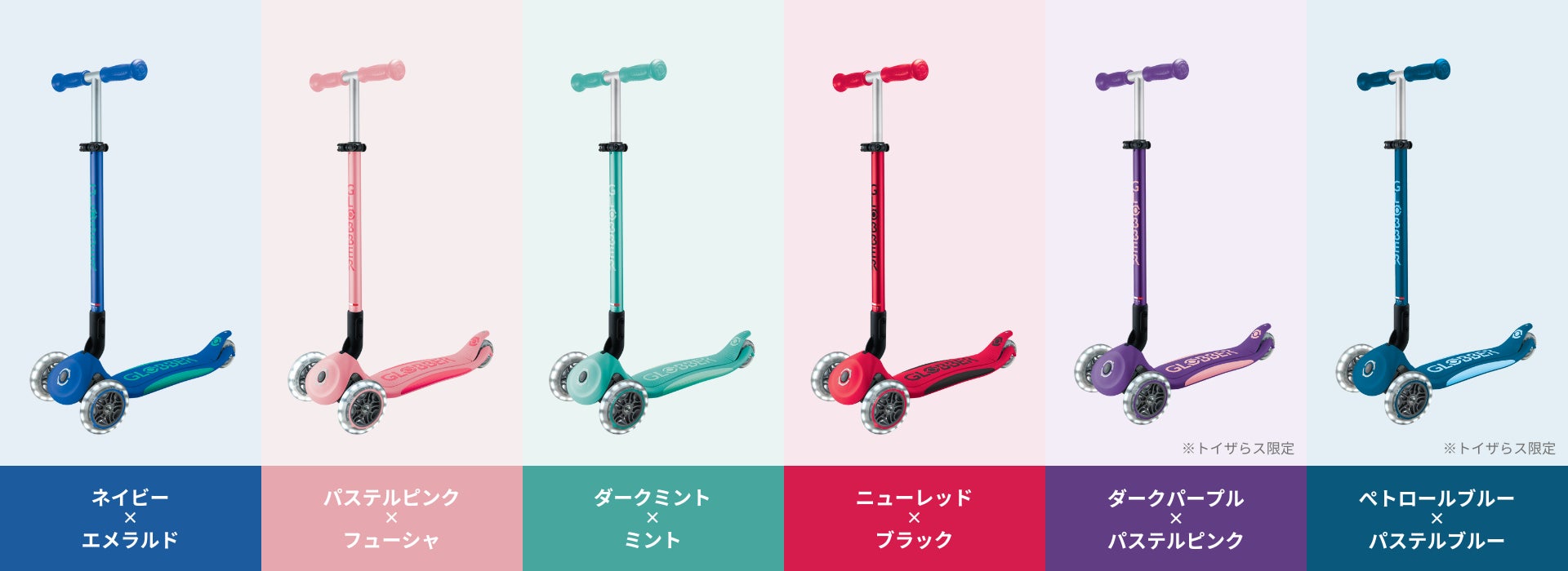 GLOBBERよりフレンチポップなカラーの三輪キックスクーター「プリモ」「ゴーアップECO」が登場!はじめてのキックスクーターに