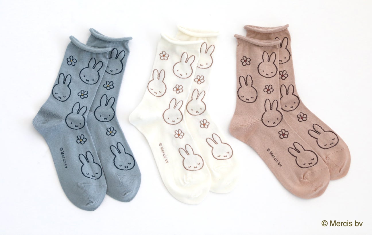 これまで、ミッフィー柄が中心のコラボレーション靴下でしたが、第3弾は「ミッフィー&メラニー」をテーマに2種類、愛くるしいミッフィーをモチーフにした靴下1種類、全部で3種類ご用意しました。お出かけやおうち時間など、どんなシーンでもかわいくおしゃれを楽しめます。