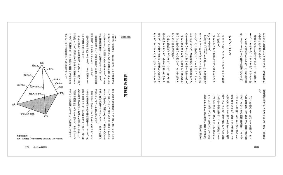 など、ジャガイモの起源から歴史、食文化、料理法の考察など、玉村氏ならではの視点で軽妙に綴られています。