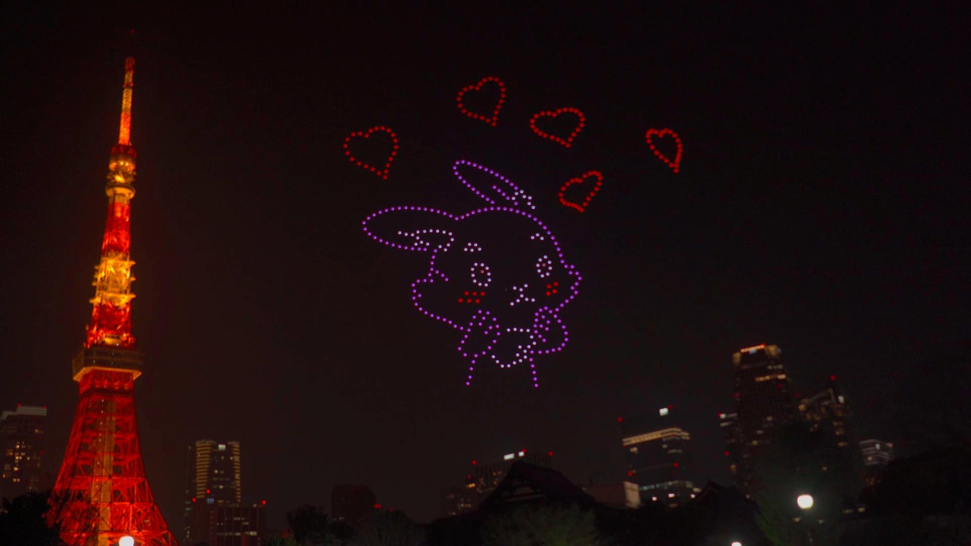 今回のショーでは、500機のドローンで、パンダやウサギ、ヘビなどのNFT(※4)キャラクターのほか、QRコードや「Happy Birthday」などのメッセージを夜空に映し出し、訪れた方々から歓声が上がりました。
