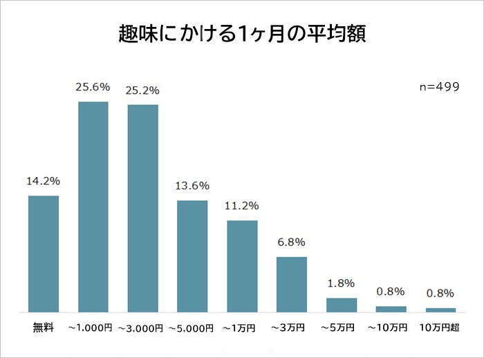 ・社会人が趣味のために1ヶ月にかける平均金額は6,889円