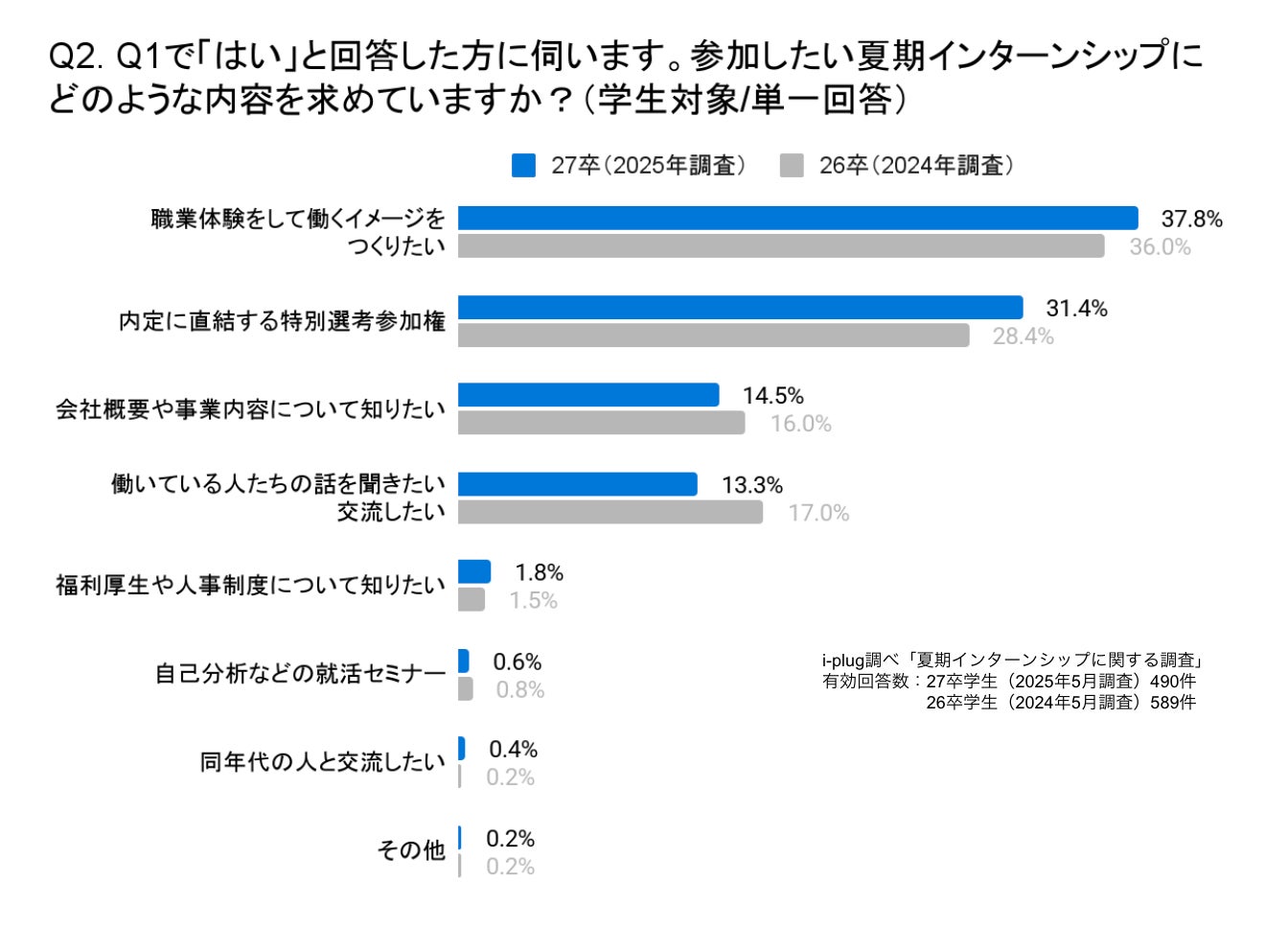 Q2. Q1で「はい」と回答した方に伺います。参加したい夏期インターンシップにどのような内容を求めていますか?(学生対象/単一回答)