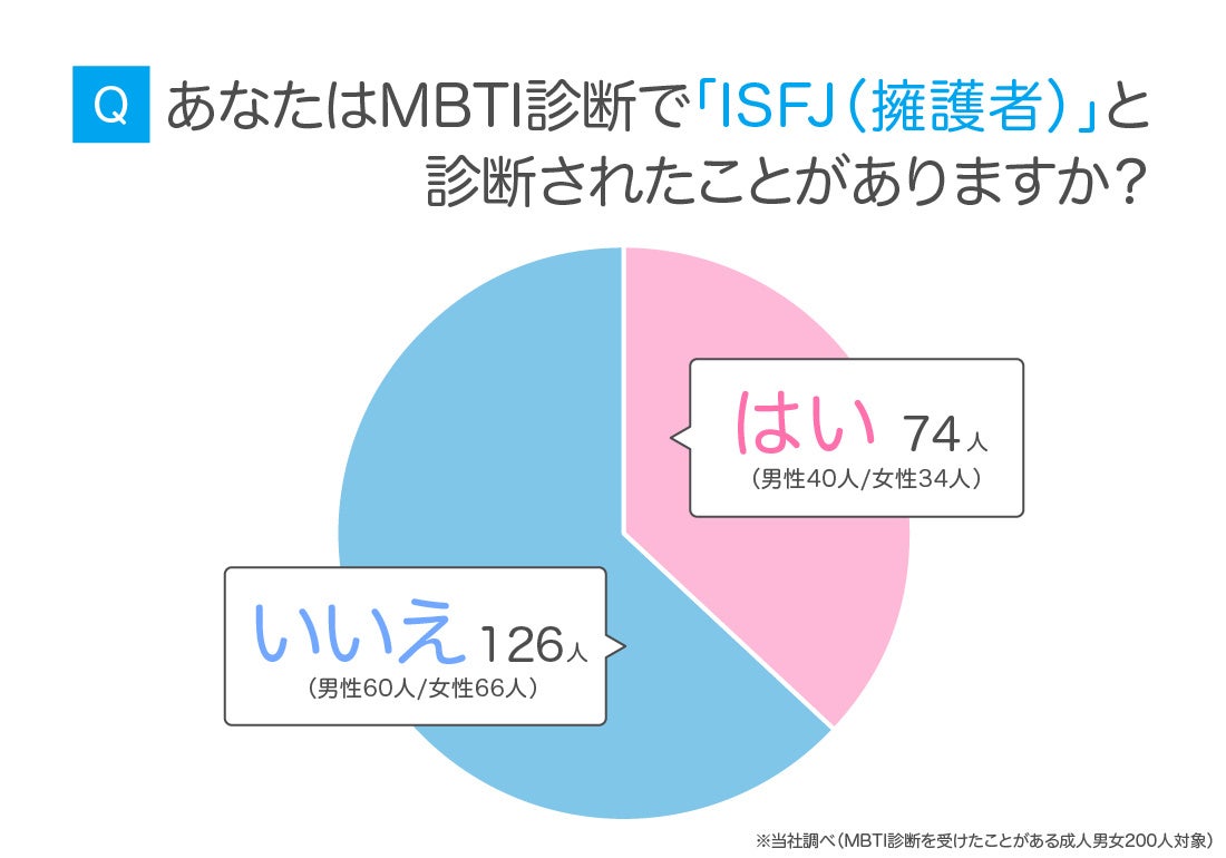 調査対象:MBTIテストを受けたことがある成人男性・成人女性、MBTIテストで「ISFJ」と診断された成人男性・成人女性、MBTIテストで「ISFJ」と診断されたことがない成人男性・成人女性