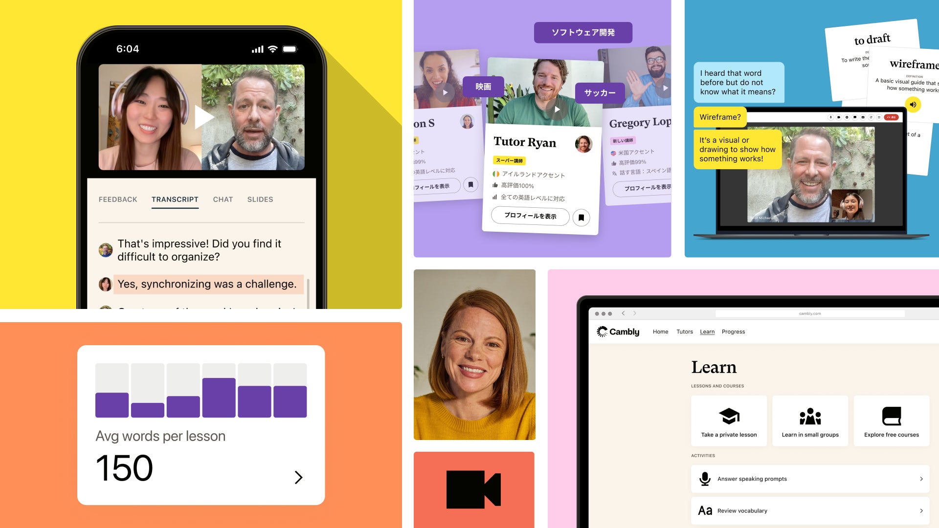 Camblyは、会話の力で英語学習を革新することをミッションに、ネイティブスピーカーの講師と英語学習者を結びつけ、AI技術を活用してパーソナライズされた効果的な英語学習体験を提供しています。