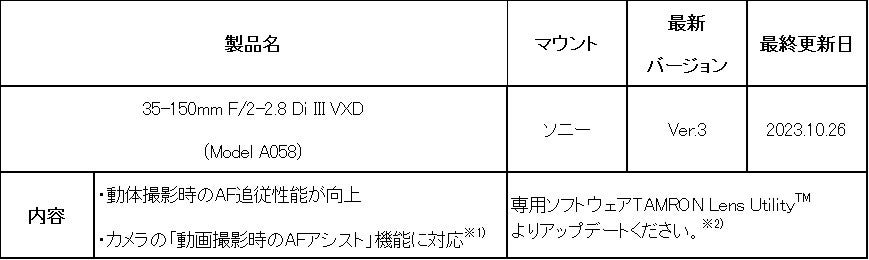 ※2) TAMRON Lens Utilityダウンロードページ: https://www.tamron.com/jp/consumer/support/download/lensutility/