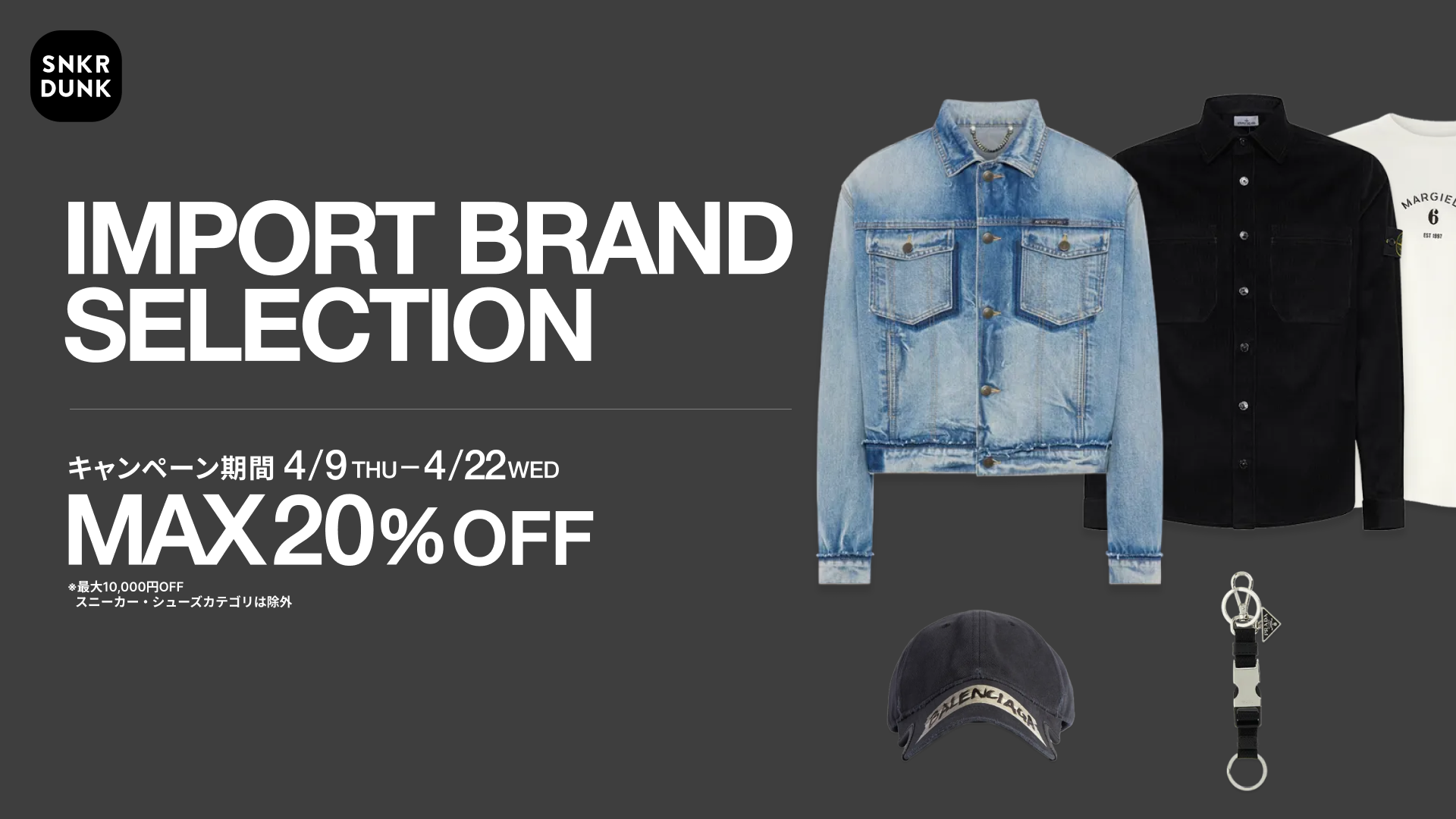 あわせて、4/9(木)より人気のインポート・ラグジュアリーブランドをさらにお得に購入できる「IMPORT BRAND SELECTION キャンペーン」を開催します。期間中は一部対象ブランドが最大10,000円オフでお買い求めいただけます。