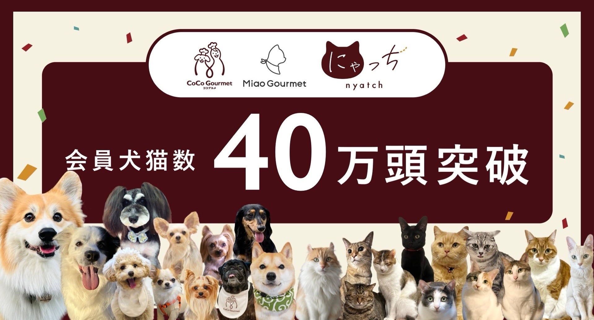 そしてこの度、多くの飼い主さま、ワンちゃん、ネコちゃんに愛され、ココグルメ・ミャオグルメの累計会員犬猫数が40万頭を突破しました。