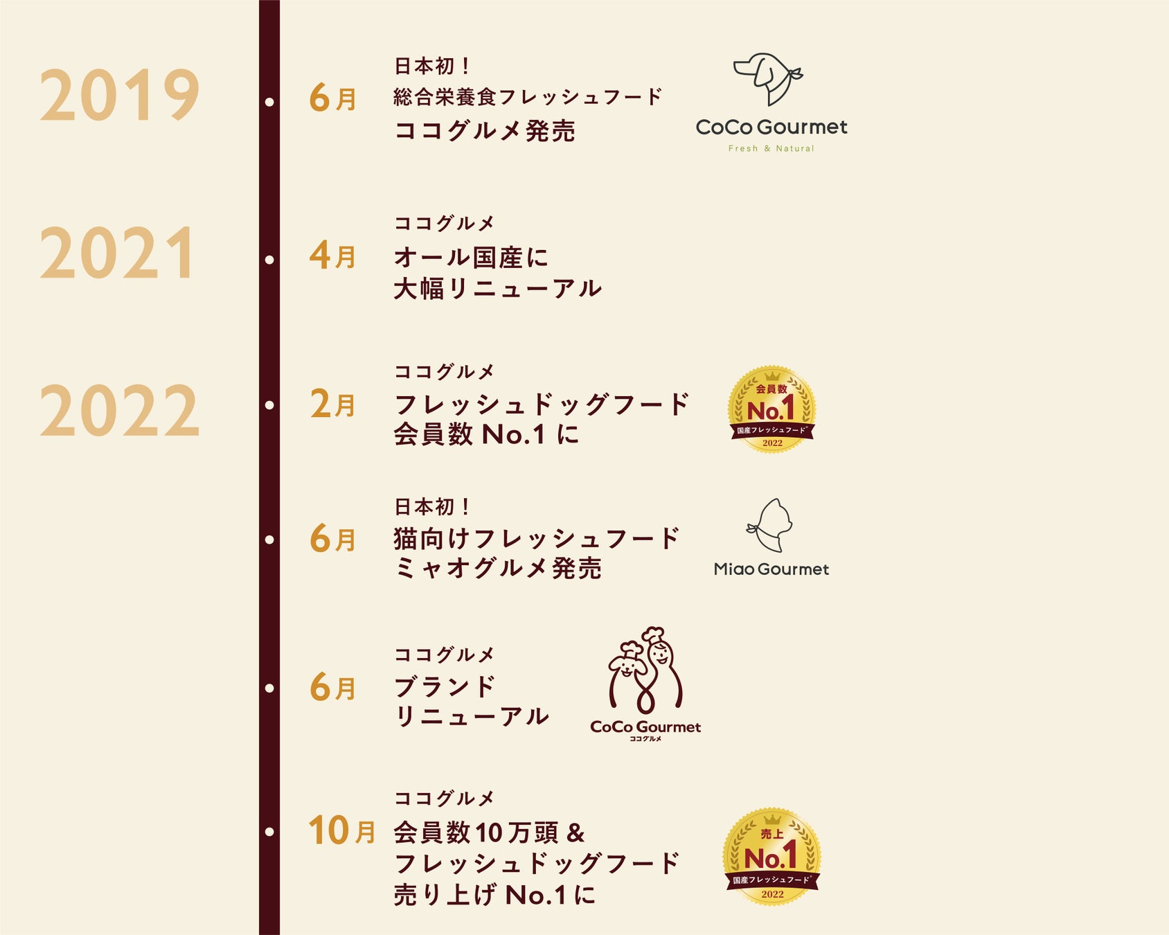 大手食品メーカーも参入するフレッシュフード市場において、当社が展開する愛犬向け手づくりごはんブランド「ココグルメ」は2年連続でフレッシュドッグフード(※1)売上No.1(※2)をキープしており、高いシェアを獲得しています。