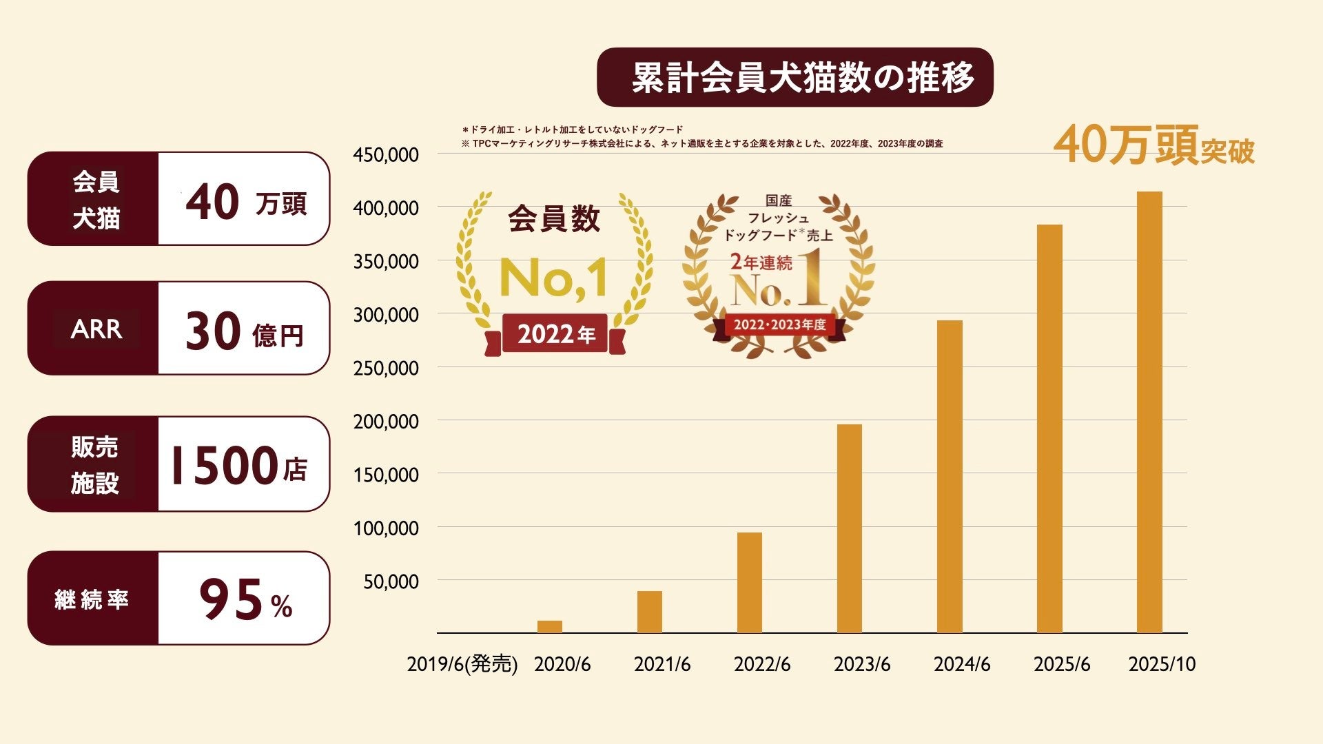・ココグルメシリーズ累計会員愛犬数40万頭突破(2025年10月時点)