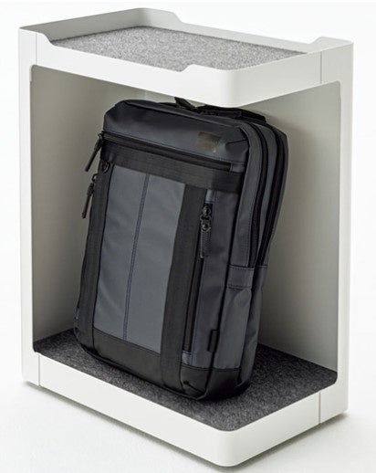 下段にカバンなどを置けるスペースを確保しており、上段にはモバイルバッグや小物を置くことができます。