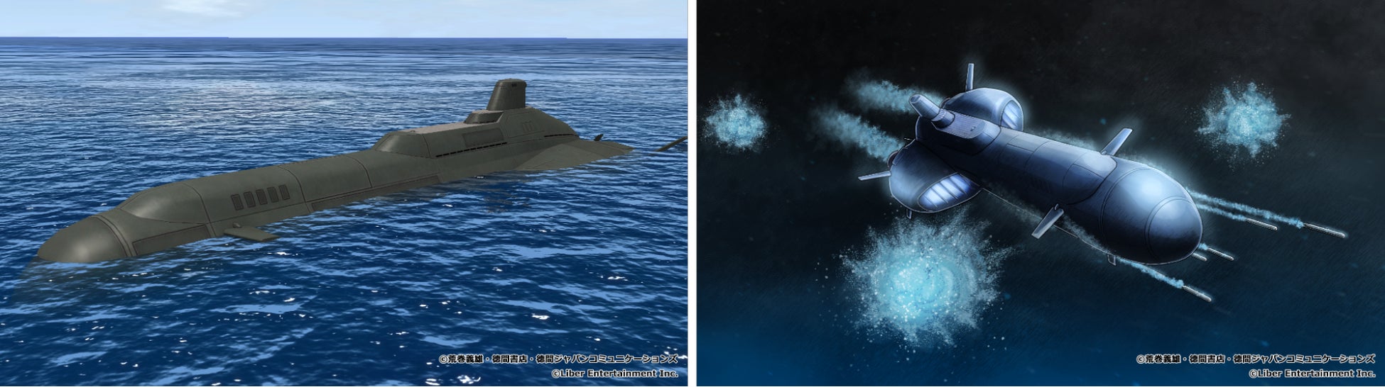 ▲潜水「特潜伊601富嶽号」 左:スクリーンショット 右:イメージイラスト