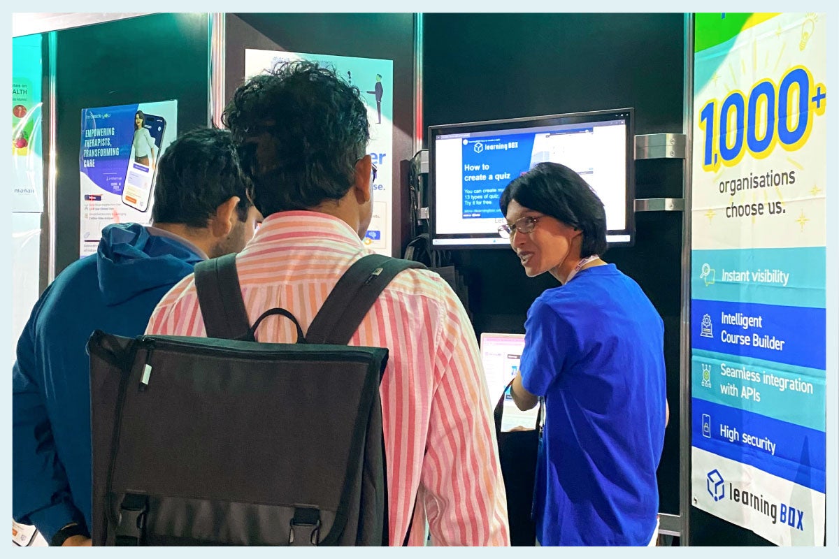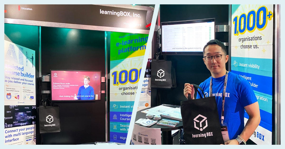 弊社ブースではeラーニングシステム「learningBOX」についてご紹介し、実際の操作画面を体験いただけるデモンストレーション等も実施しました。最先端テクノロジーの視察に来られた世界各国からのスタートアップ企業、投資家をはじめ、さまざまなお客さまにlearningBOXを知っていただく機会としてPRしました。