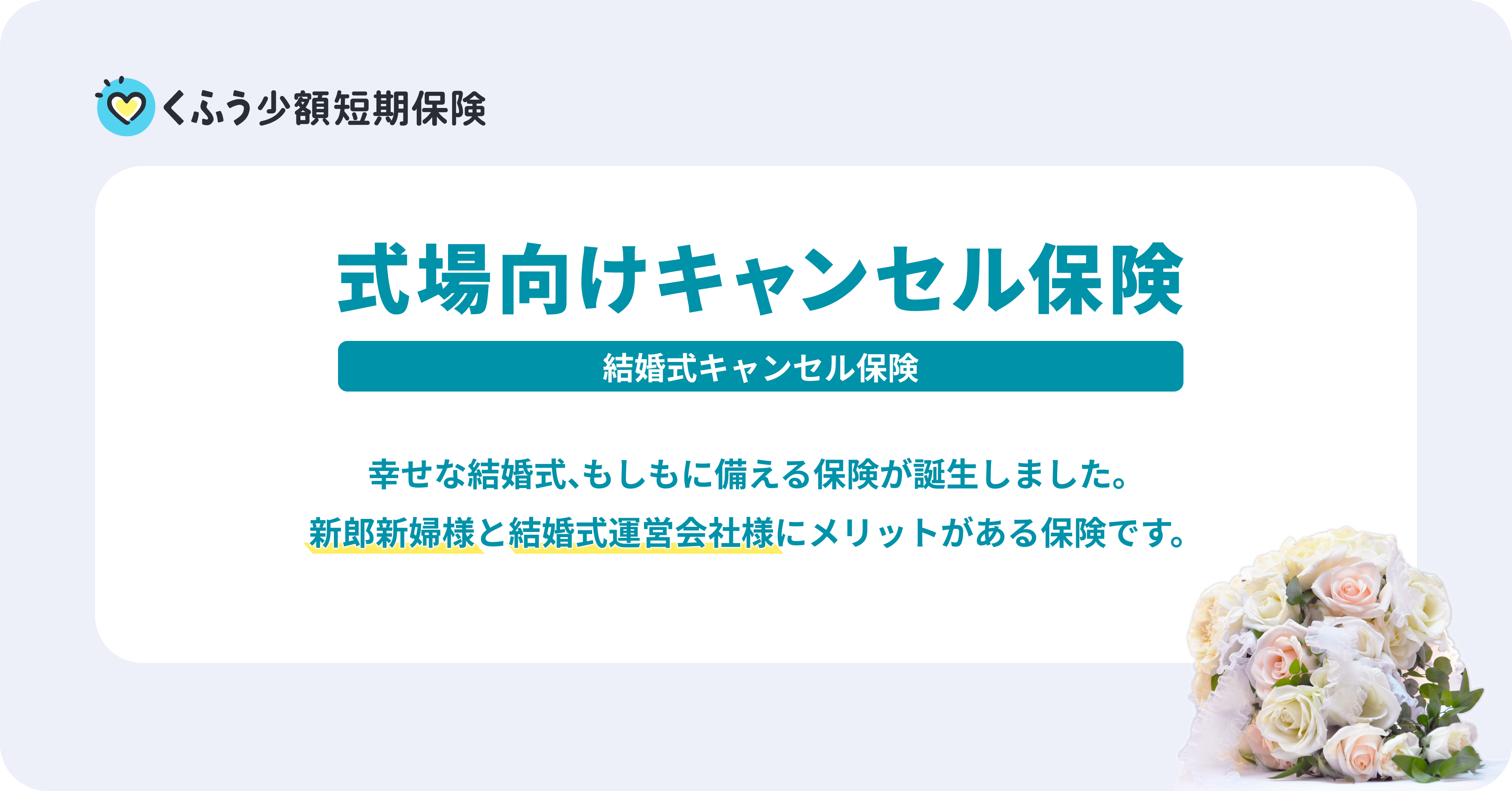 くふうグループにおいて、生活シーンに潜む身近なリスクを保障する保険商品を開発・提供する「くふう少額短期保険株式会社( https://kufu-shotan.com/ )」(以下、「くふう少短」)は、本日より、結婚式のキャンセル保険を提供開始します。