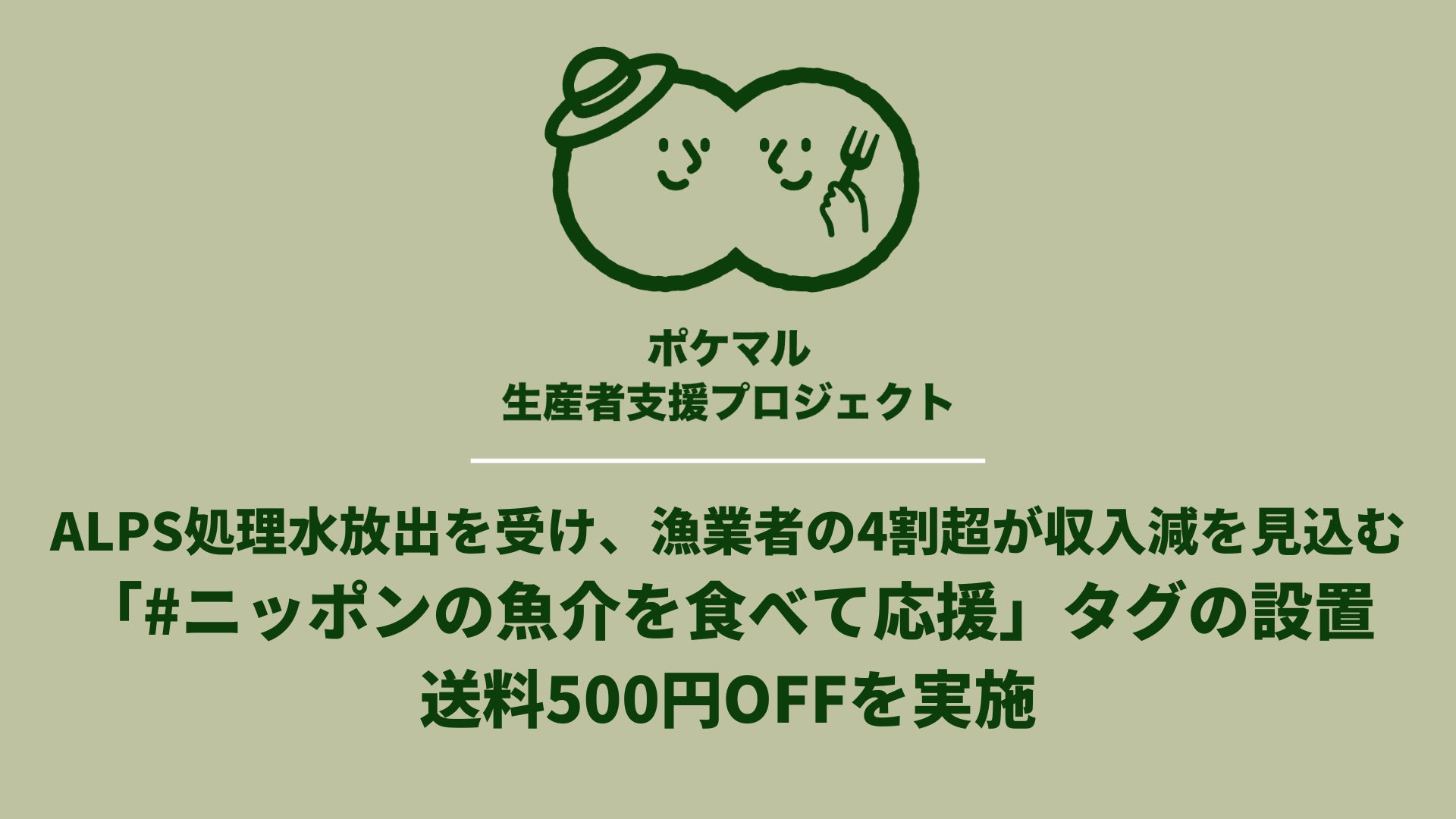ポケマル生産者支援プロジェクトの一環として、「#ニッポンの魚介を食べて応援」タグの設置と送料500円OFFを実施