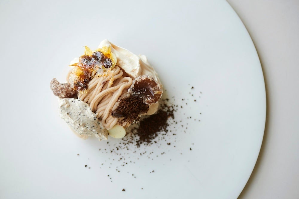 チーズケーキの味わいを表現するときは、メインとなる素材を最大限引き立てることを意識しています。栗のフレーバーを考えるのは2度目ですが、今年は和栗に比べて旨みが濃く、他の素材とも組み合わせやすいイタリア産の栗を選びました。そこへコーヒーの香りを閉じ込めた生クリームを組み合わせることで、栗の濃厚な風味をしっかり残しつつ、コーヒーの香ばしさも感じられるバランスの良い味わいに仕上げています。