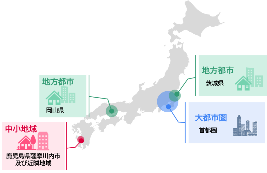なお、「地方都市」は、岡山県内自治体・茨城県内複数自治体において、家庭排出の廃プラスチックの集約および大規模選別施設での高度選別を実施し、高品質再生材の製造と効率的な循環モデルを検証します。