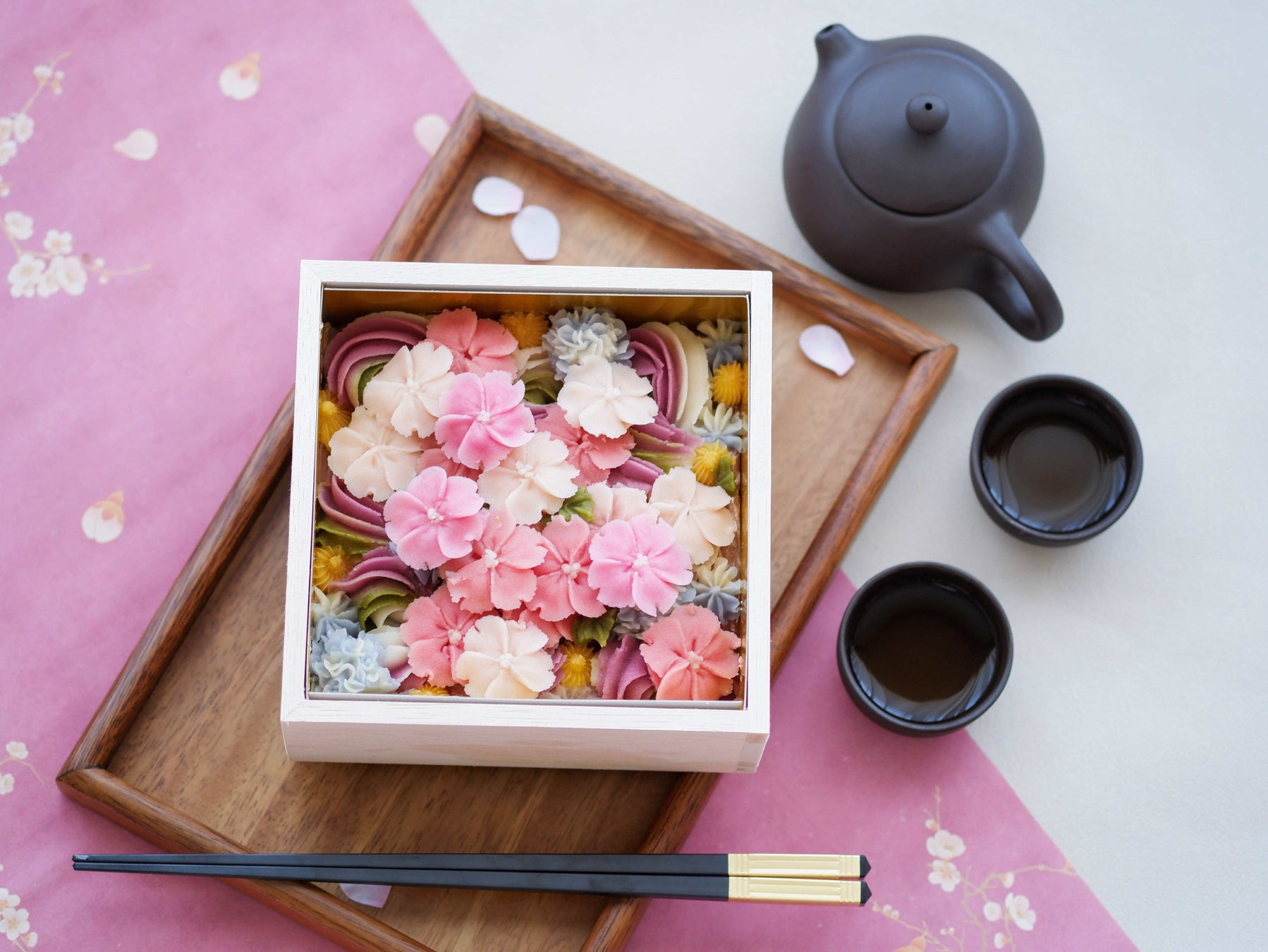 4月の回では、春にふさわしい桜をモチーフにした「桜のフラワーボックス」をテーマに実施します。着色料を一切使用せず、天然色素だけで生み出す繊細なグラデーションが魅力です。