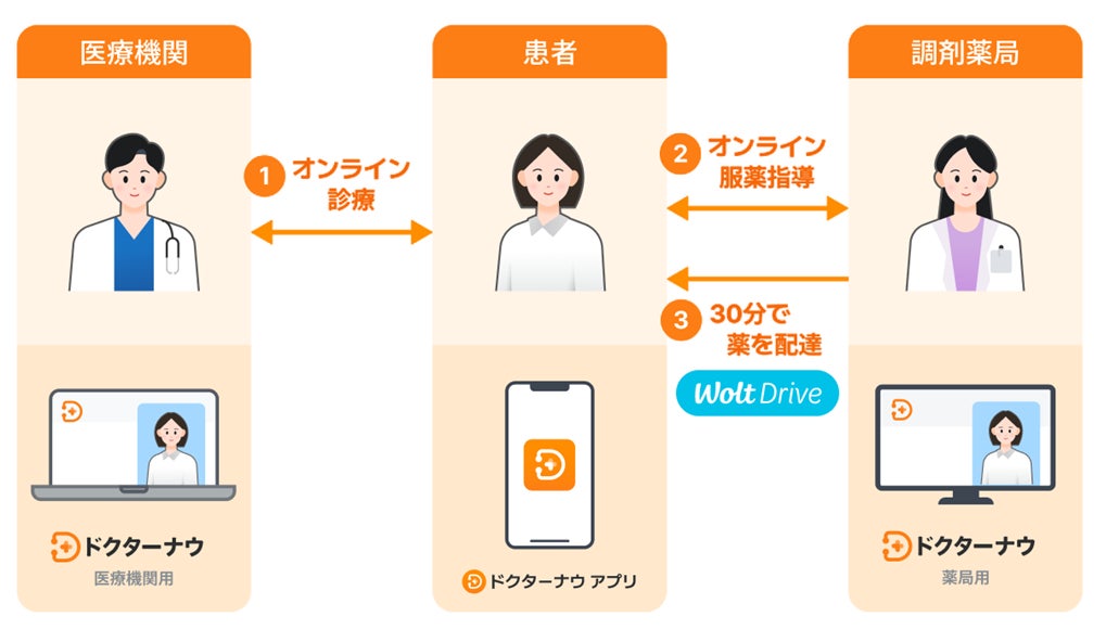 Woltの法人向け配送サービス「Wolt Drive」を活用し、ドクターナウが処方薬のデリバリーを開始! 診療から薬の受け取りまでオンラインで完結。