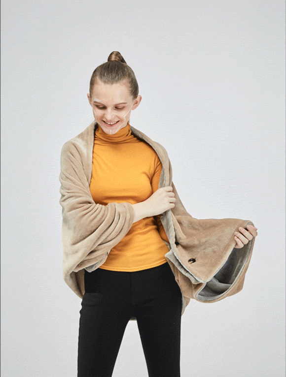 “着れる”4WAY発熱ブランケットでいつでもどこでもコタツ気分。1秒ですぐ温かい!「HEATING BLANKET」