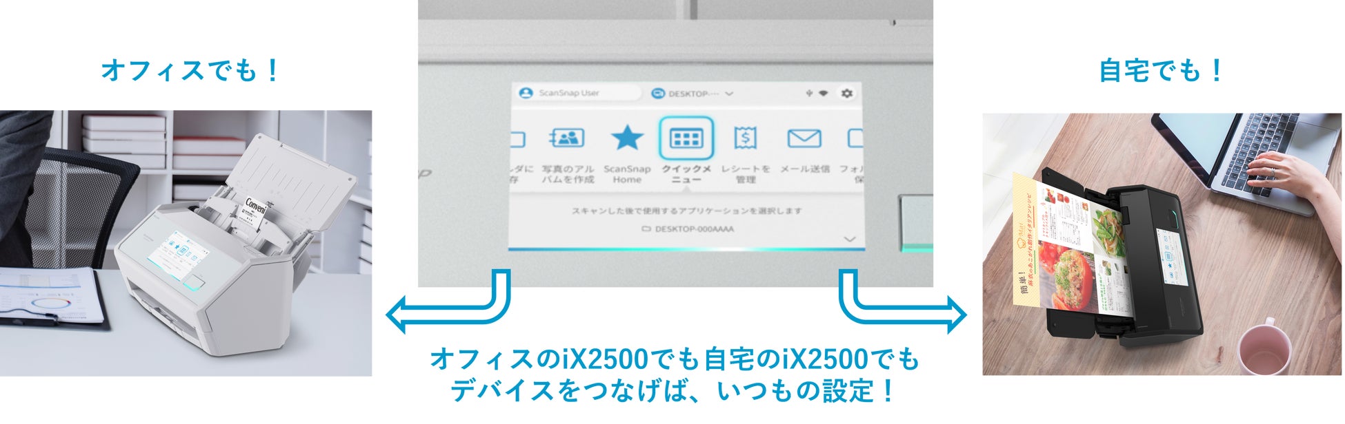 これにより、オフィスやパブリックスペース、コワーキングスペースなど様々な場所に設置してあるiX2500でも、自分のiX2500と同じ使い心地でご利用いただけるようになります。
