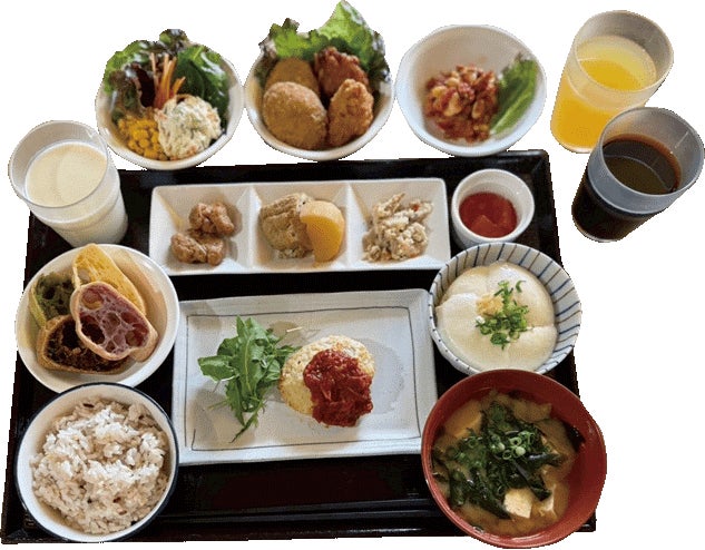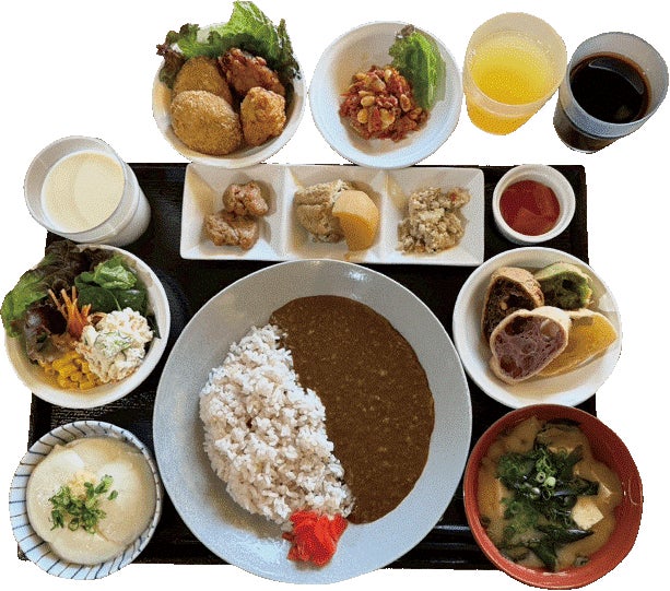 これまでもご好評いただいていたバイキングは、さらに充実した内容に生まれ変わりました。五ケ山豆腐自慢のこだわりの豆腐はもちろんのこと、しぼりたての濃厚な豆乳が飲み放題。お子様から大人まで大人気の鶏の塩麹唐揚げ、豆乳クリームコロッケ、大豆のチリコンカンが食べ放題に!さらに、ドリンクコーナーにはアイスコーヒーとオレンジジュースが飲み放題として追加され、食後のデザートタイムをより一層豊かにします。そしてグルテンフリー二十雑穀米もこのご時世に嬉しい食べ放題、味噌汁もおかわり自由です。この大幅にパワーアップした豆腐バイキングメニューは、全ての御膳にもれなく付帯します。