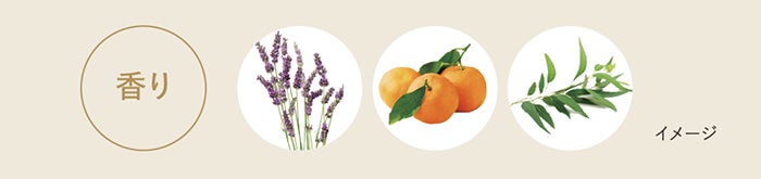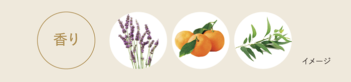 心落ち着くラベンダー、スイートオレンジにすっきりとしたユーカリをブレンドしたアンジェリクな香り。