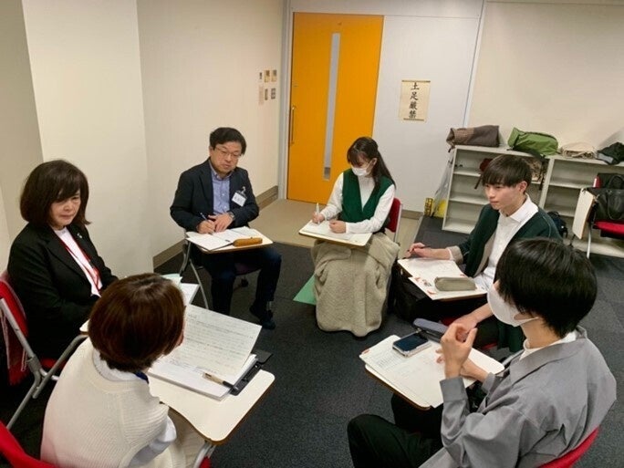 11グループに分かれ、学生2名:社会人1名での対話の時間。