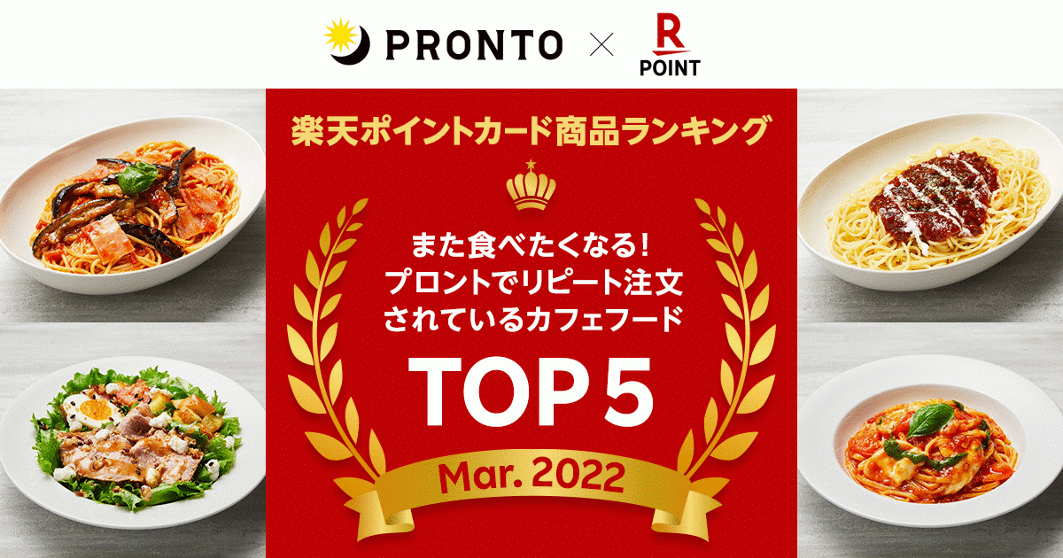 本企画では、プロントにおける「楽天ポイントカード」の利用データを活用し、利用者にリピート注文されているカフェメニューをランキング化しました。1位に「ナスとベーコンのトマトソース」、2位に「ローストポークとリコッタチーズのグレインズサラダ」、3位に「コクうまミートソース」がランクインしました。