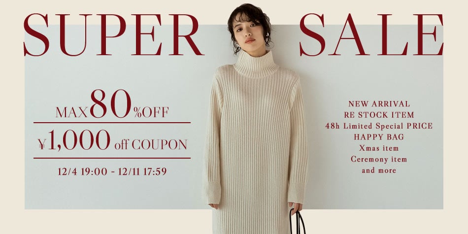 【Re:EDIT(リエディ)】12/4~楽天スーパーSALEにて48時間限定タイムセールや、最大1,000円OFFクーポン配布を実施。特設ページにてクリスマスや年末年始に着たい華やぎコーデもご紹介