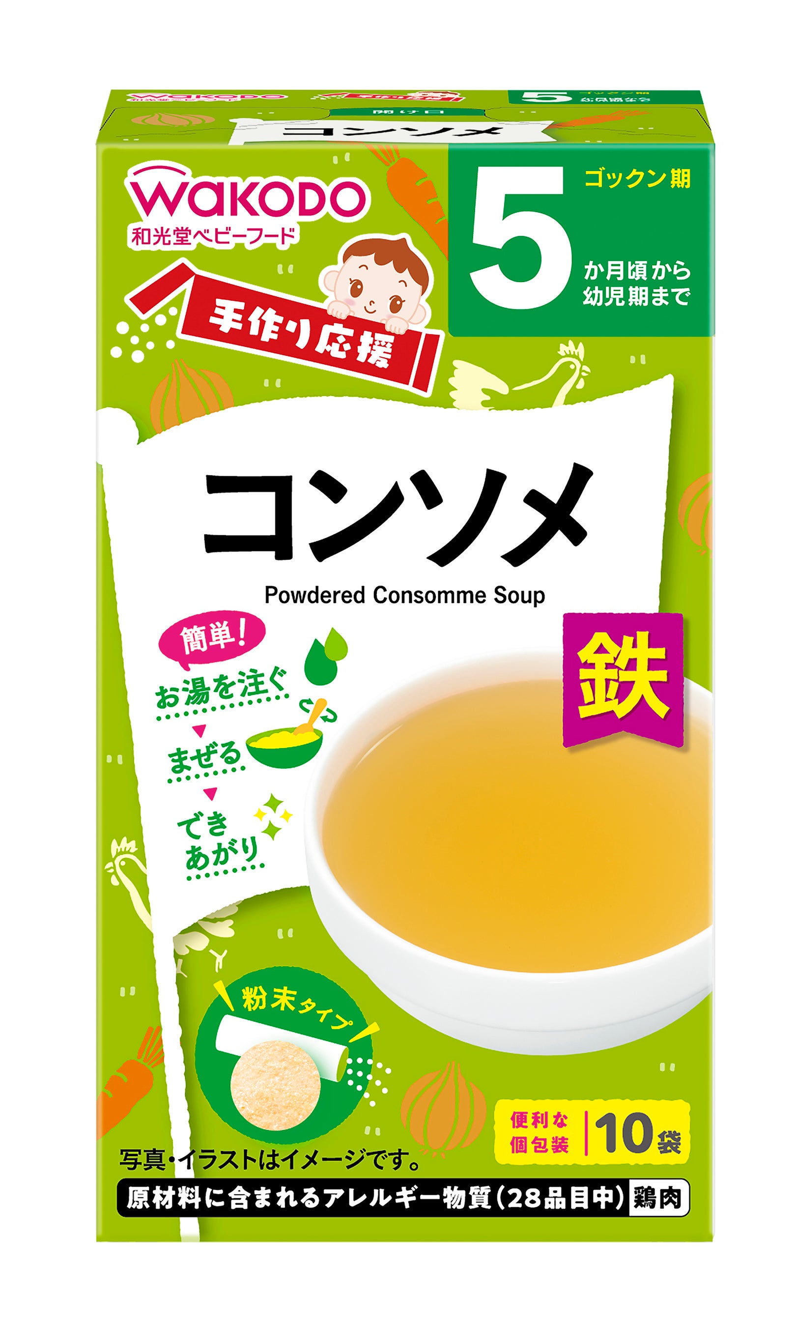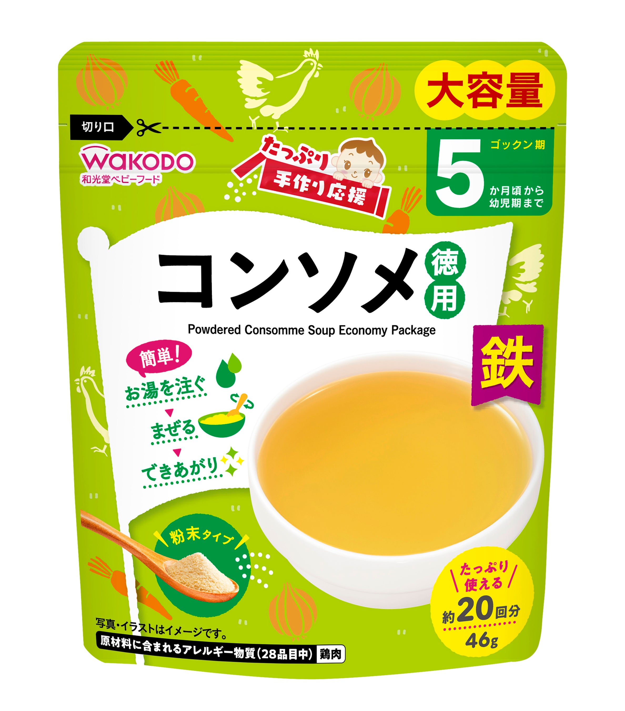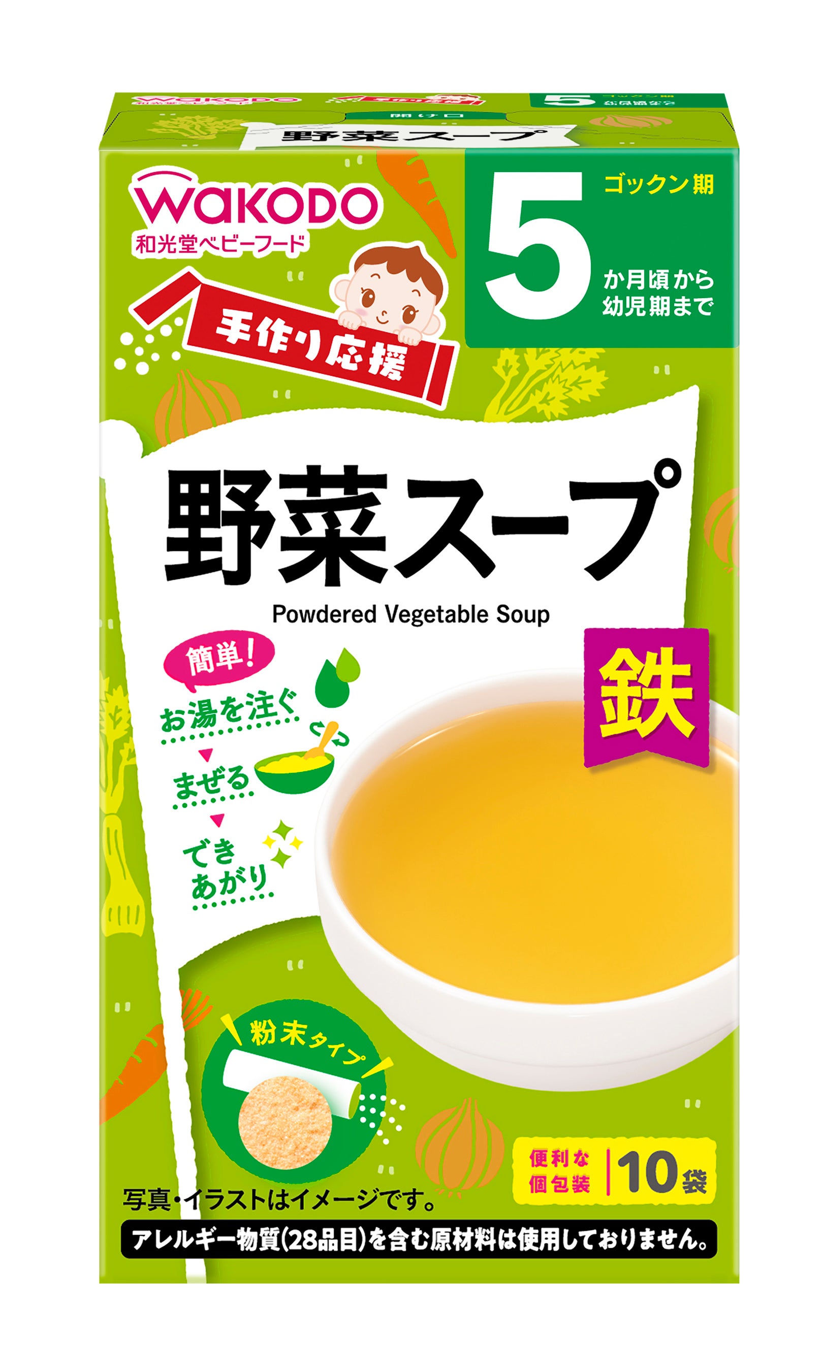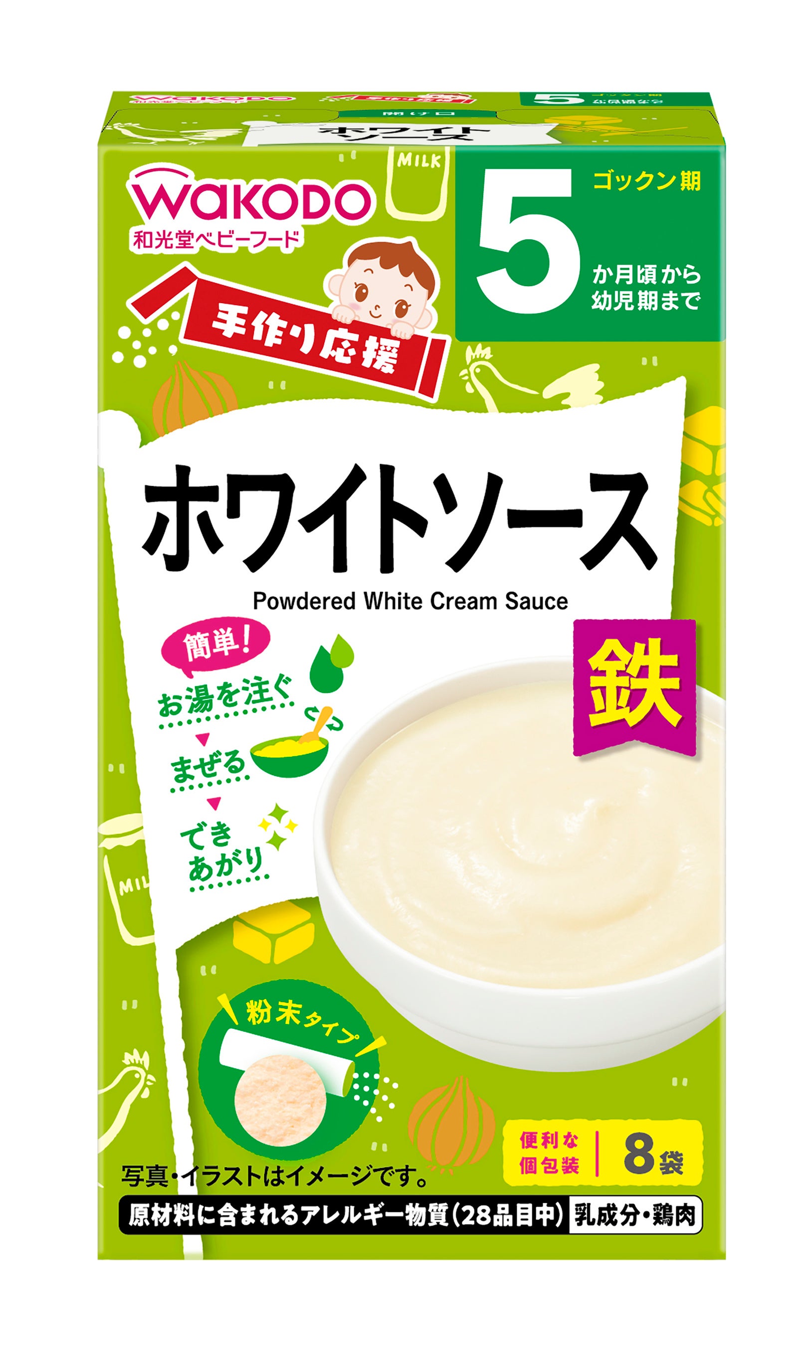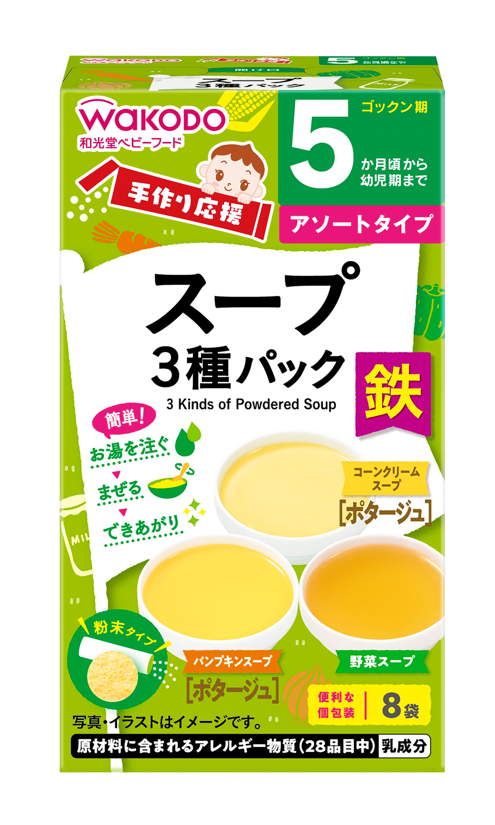 粉末タイプで、お湯を注いで混ぜるだけで様々なメニューにアレンジして使用できることから、手軽においしく、栄養バランスにも配慮した離乳食を作ることができます。