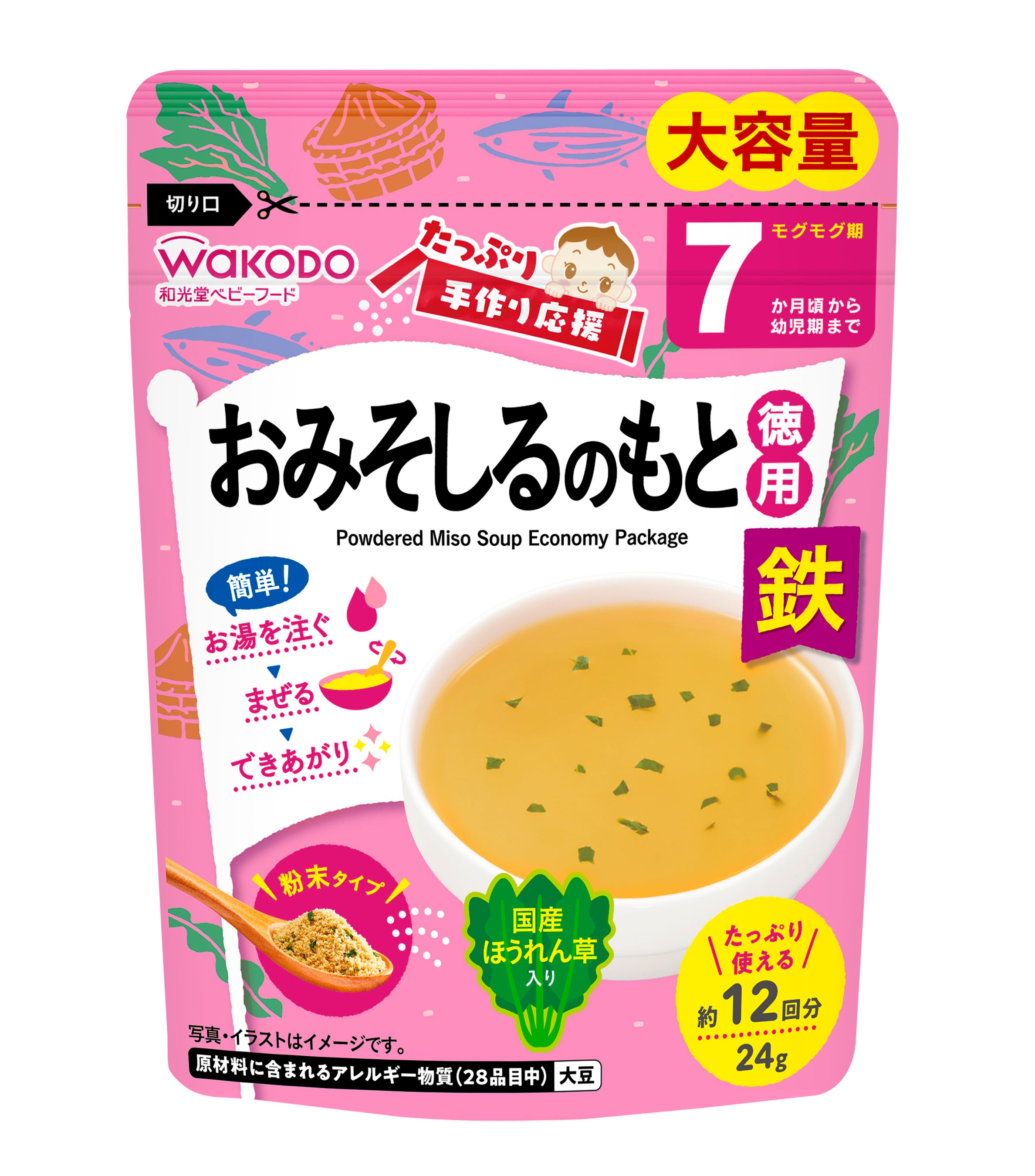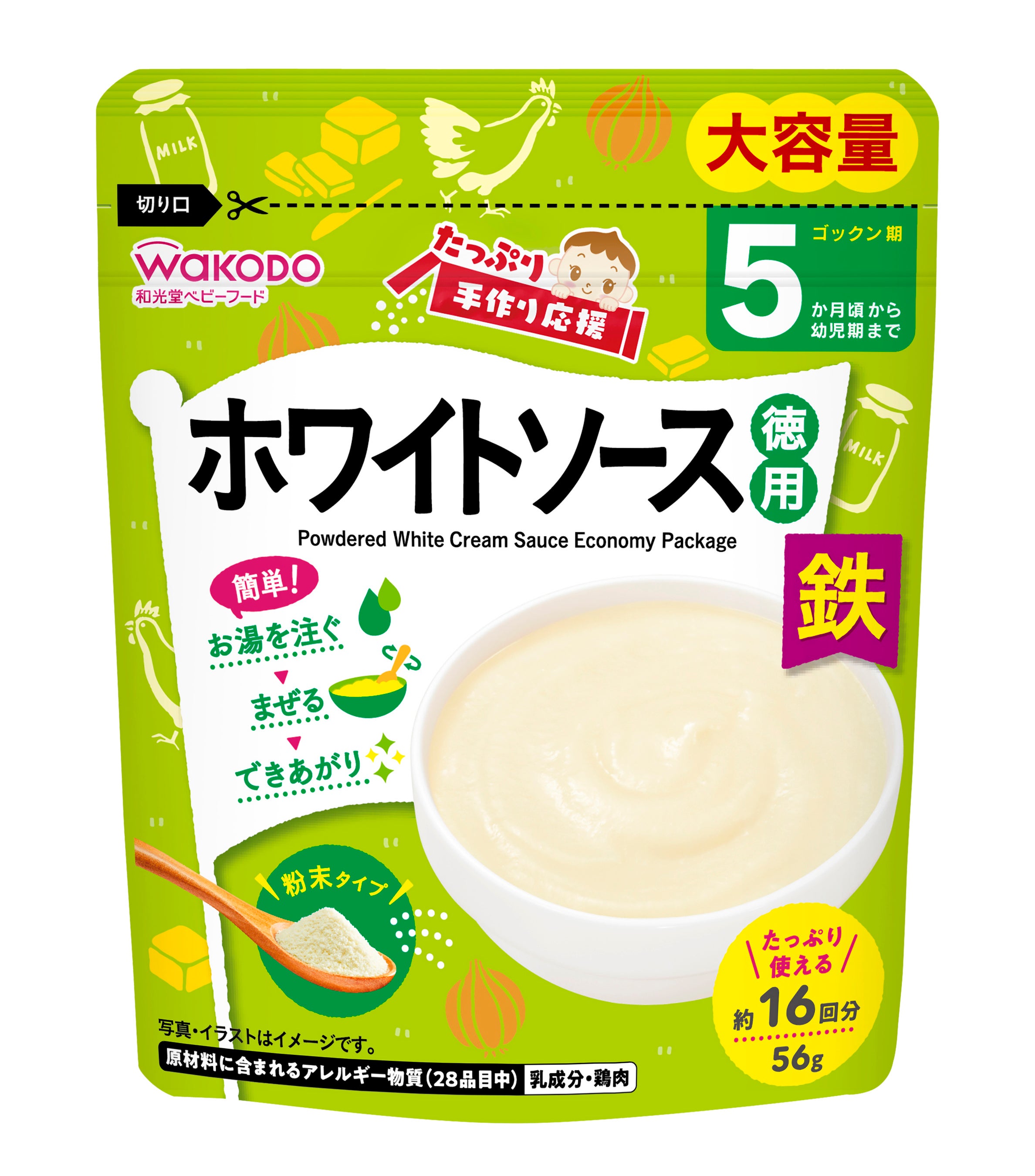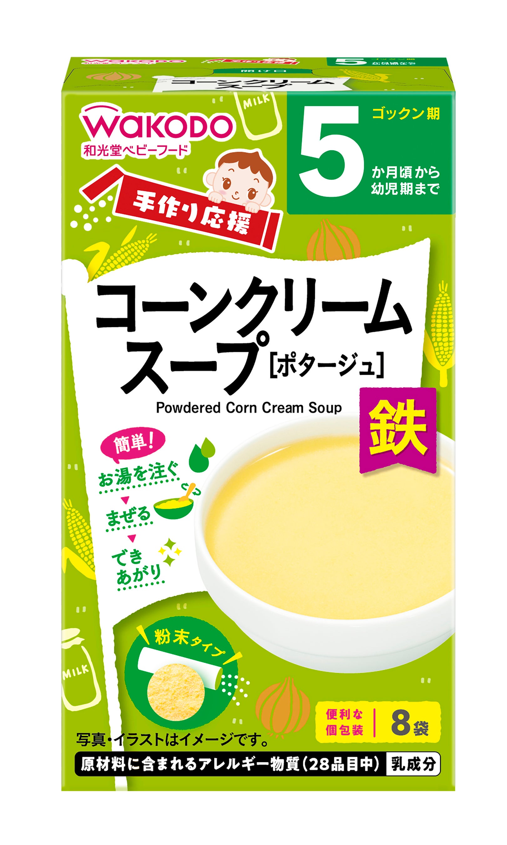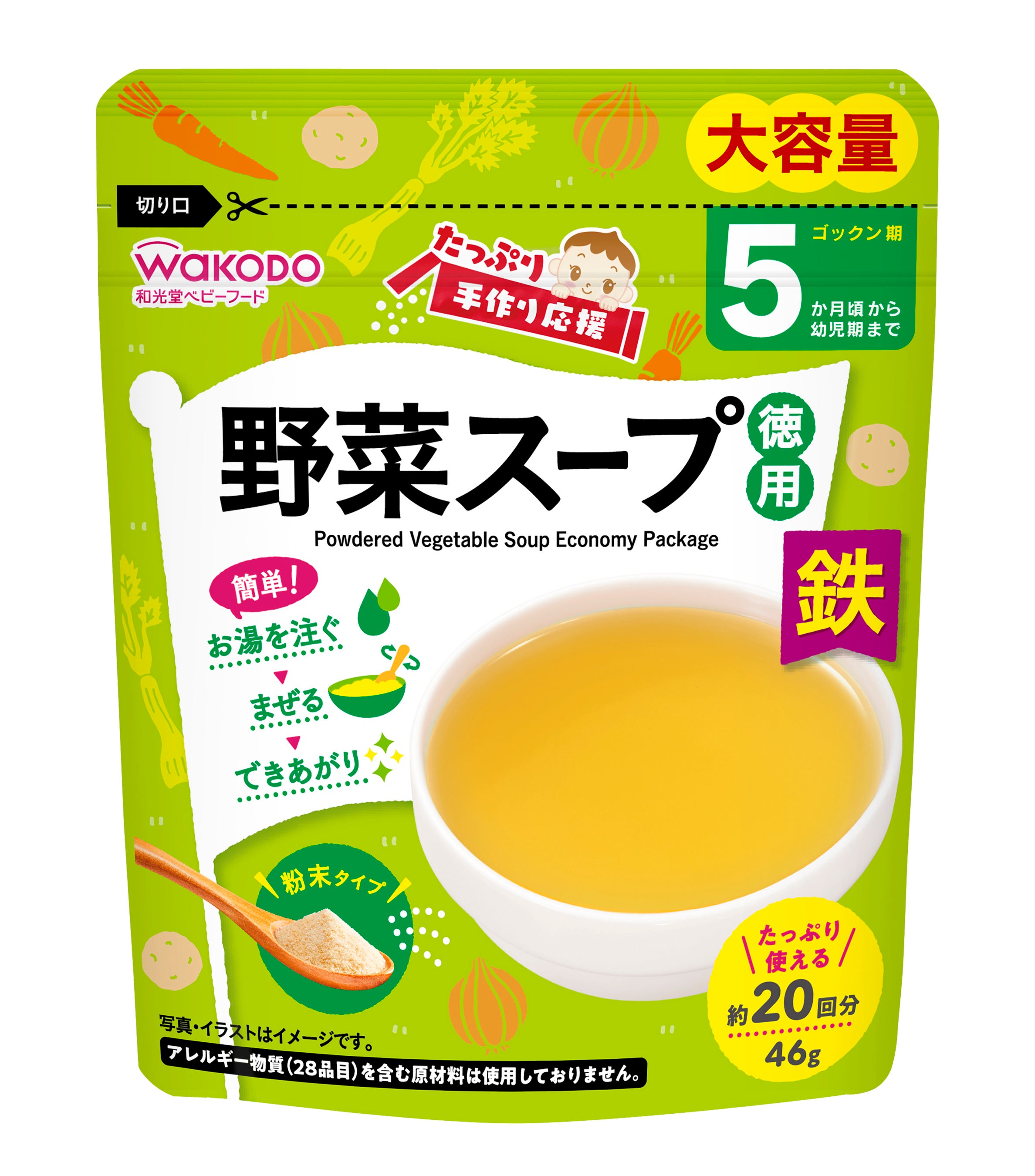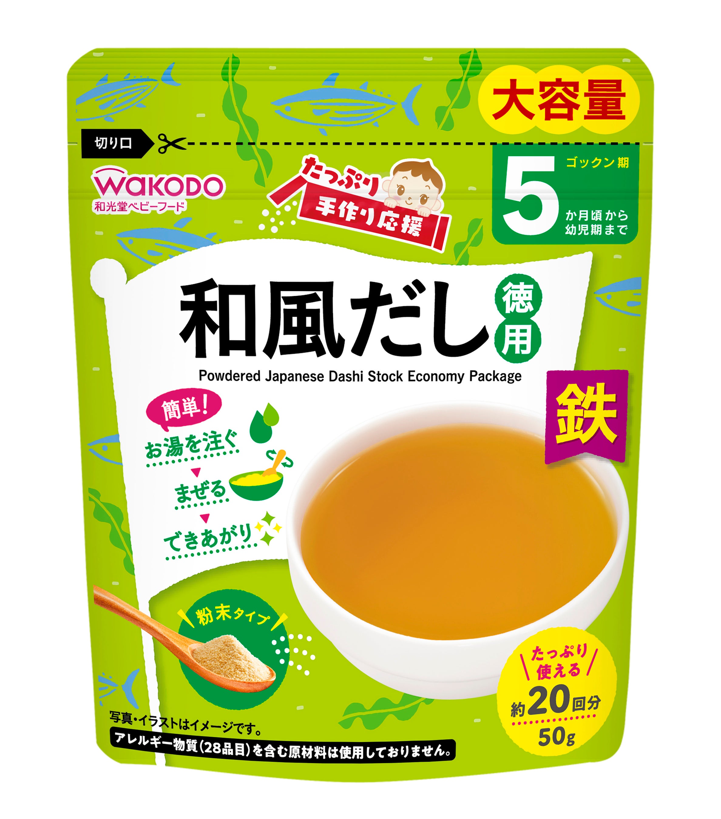 粉末タイプで、お湯を注いで混ぜるだけで様々なメニューにアレンジして使用できることから、手軽においしく、栄養バランスにも配慮した離乳食を作ることができます。