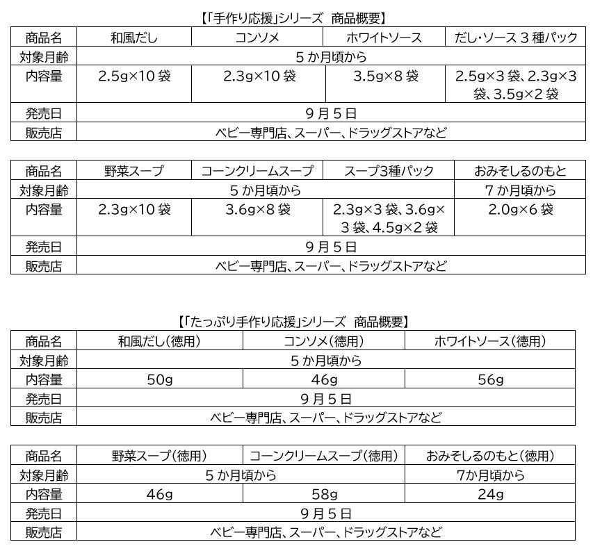 ベビーフード「手作り応援」「たっぷり手作り応援」シリーズ、14アイテムを9月5日リニューアル発売