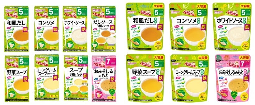 アサヒグループ食品株式会社(本社 東京、社長 川原浩)は、和光堂ブランドのベビーフード「手作り応援」シリーズ(「和風だし」「コンソメ」「ホワイトソース」「だし・ソース3種パック」「野菜スープ」「コーンクリームスープ」「スープ3種パック」「おみそしるのもと」)、「たっぷり手作り応援」シリーズ(「和風だし(徳用)」「コンソメ(徳用)」「ホワイトソース(徳用)」「野菜スープ(徳用)」「コーンクリームスープ(徳用)」「おみそしるのもと(徳用)」)計14アイテムをリニューアルして9月5日から発売します。