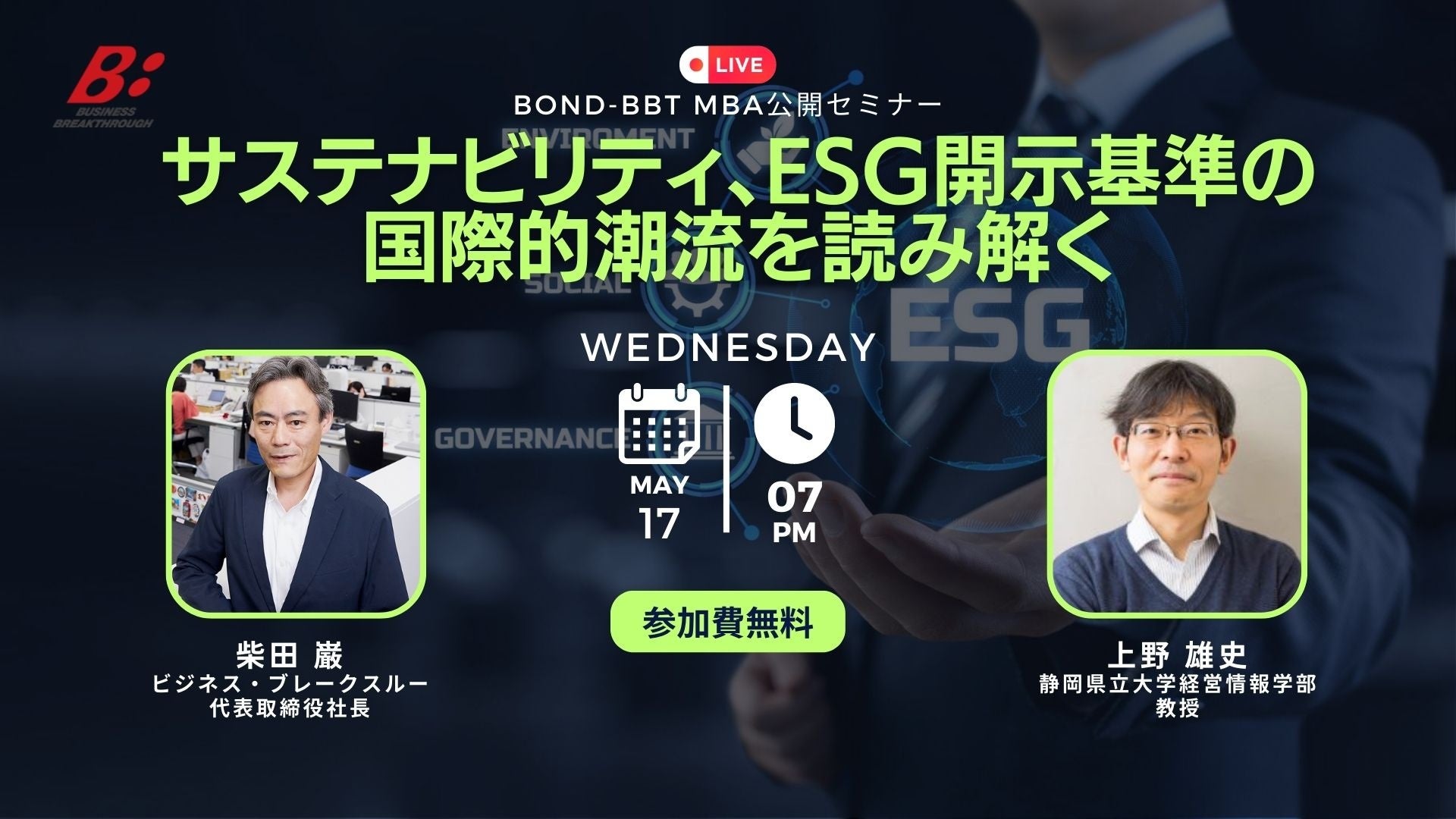 BOND-BBT MBA公開セミナー『サステナビリティ、ESG開示基準の国際的潮流を読み解く』