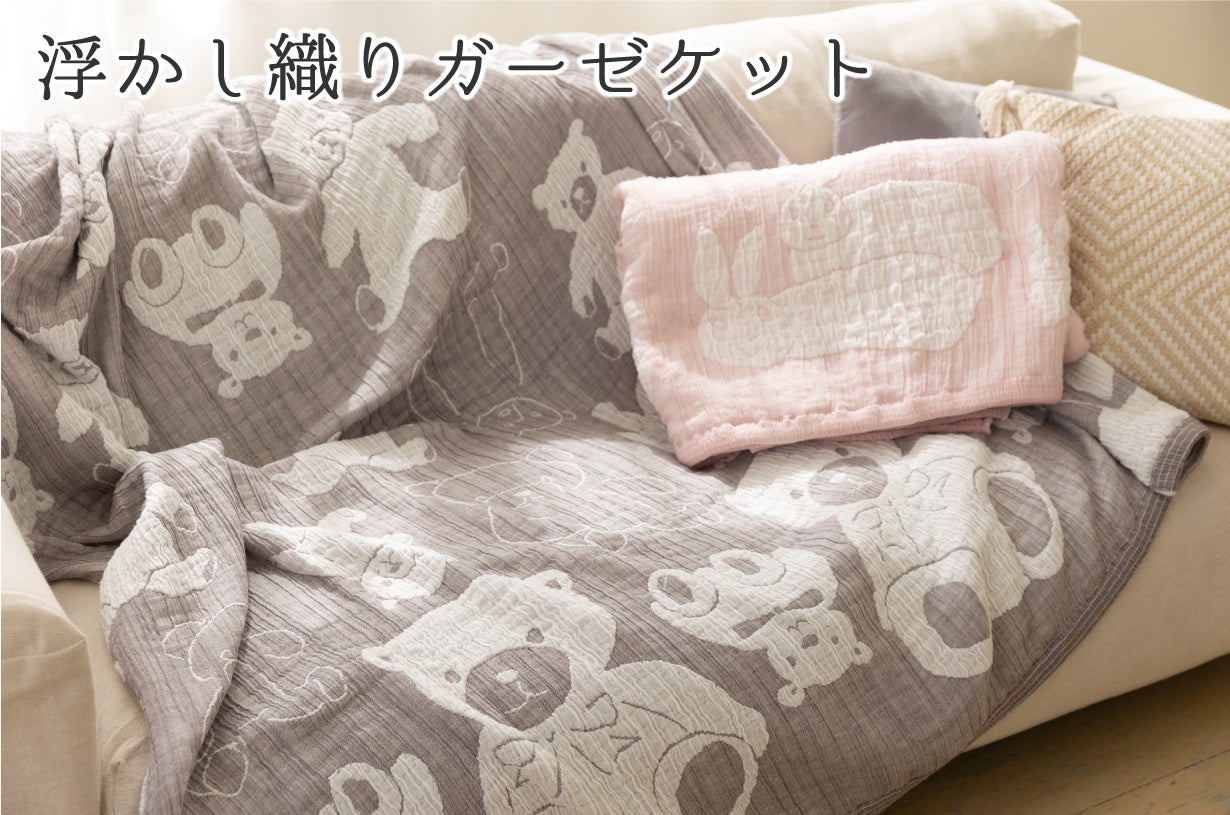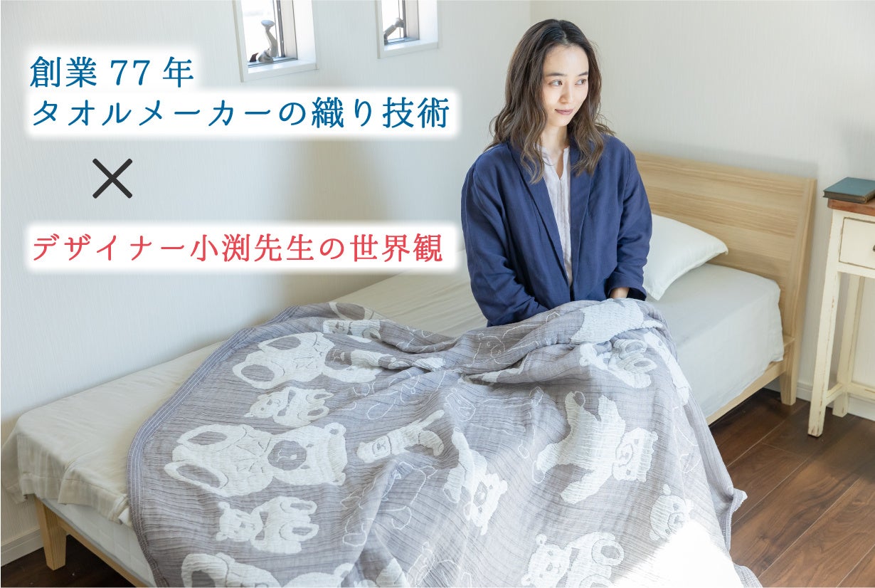 温かみのある可愛らしいイラストが魅力の小渕暁子(おぶちあきこ)先生。先生が手掛けた絵本に登場するガーゼケットを、創業77年を誇る泉州タオルメーカー『成願(じょうがん)』が開発いたしました。