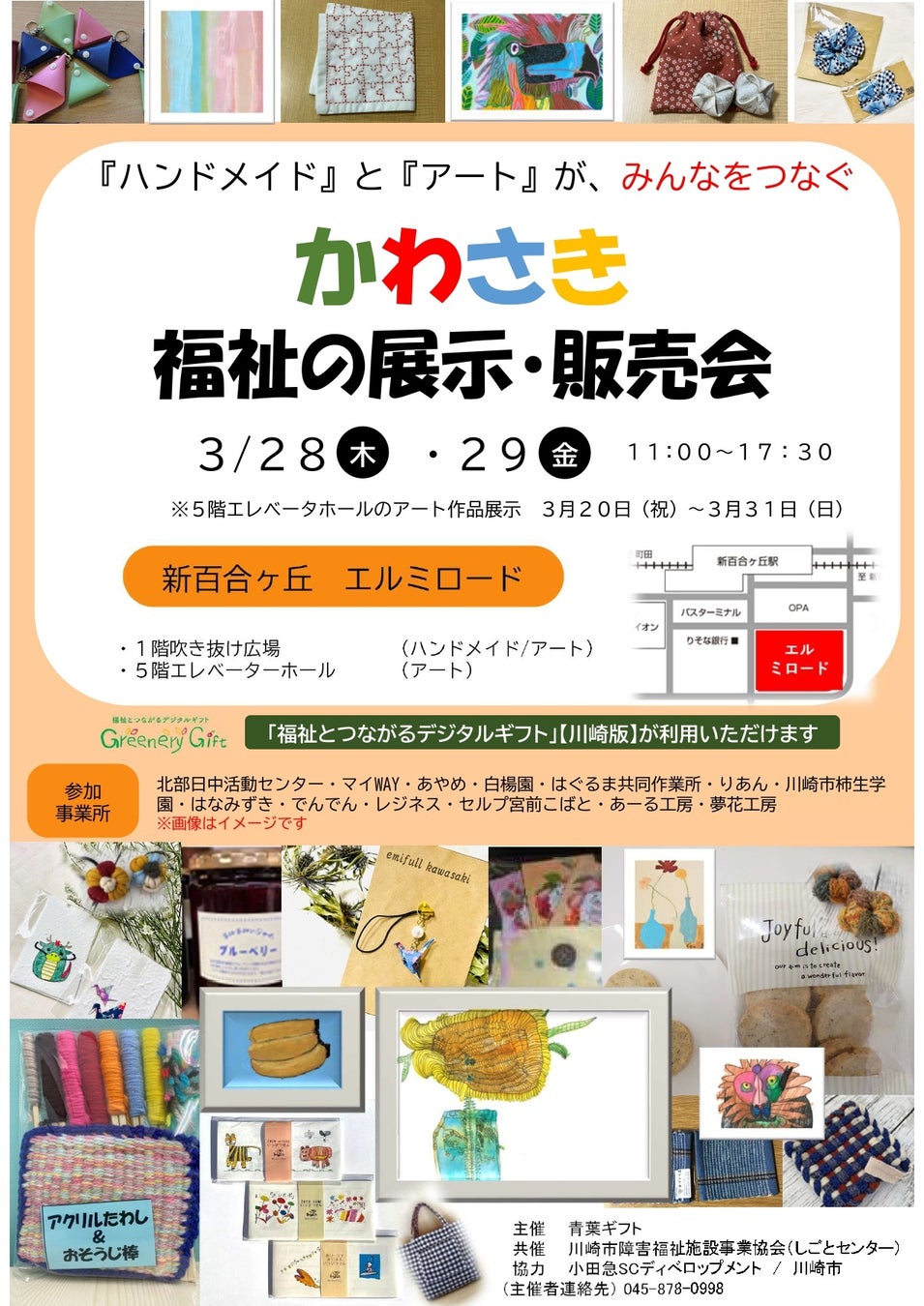 株式会社小田急SCディベロップメント(本社:東京都新宿区 取締役社長:細谷 和一郎)が運営する川崎市麻生区の商業施設「新百合ヶ丘エルミロード」(以下、「当施設」)にて、川崎市内の福祉事業所計14団体によるアート作品や製品の認知向上・販売促進を目的とした「アート作品展示・製品販売会」(以下、「本イベント」)を、2024年3月28日(木)・29日(金)に開催します。