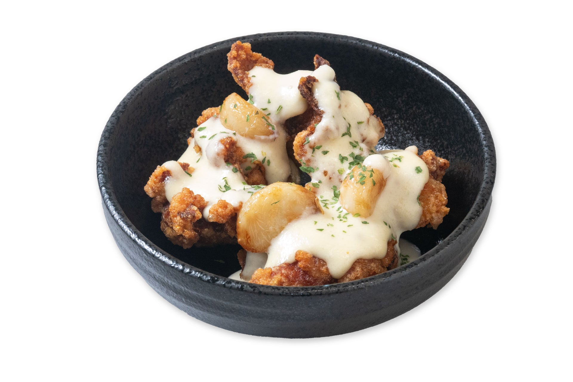 ガーリック味のマヨネーズにごろっと揚げにんにくをトッピング。
